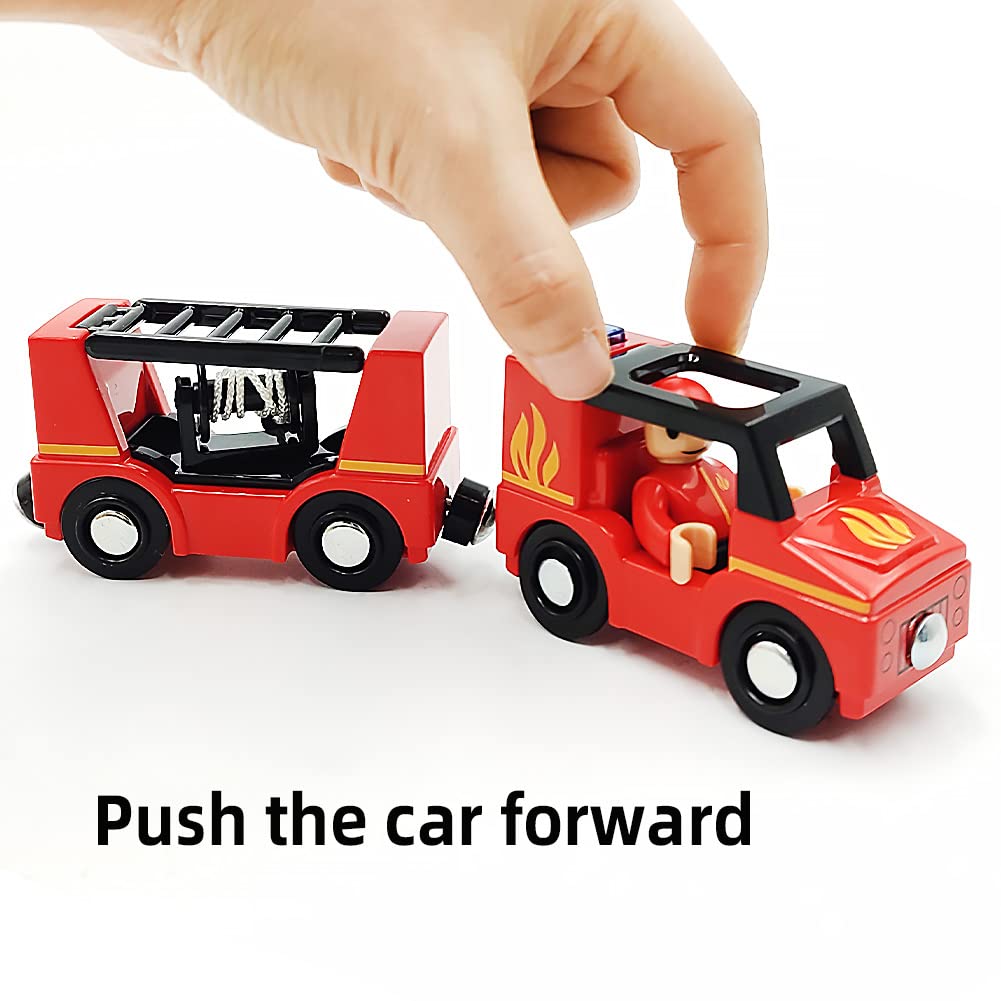 Wooden Train Cars Track Accessories Set Rescue Fire Truck Small Vehicles Magnetic Train Cars Fit For Wooden Train Track Railway For Boys And Girls (Fire Truck(With Light And Sound))