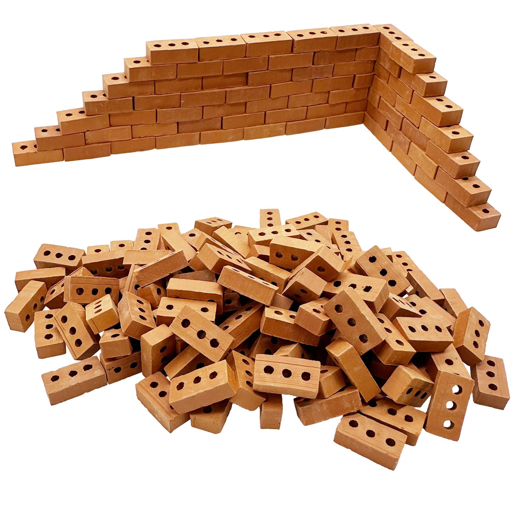 Mini bricks are very suitable for DIY your ideas and creativity it can improve childrens practice ability and concentration. Adorable decorations: Made in tiny size these dollhouse bricks can decorate tables cars cabinets desks doll house and other places as you like adding a fresh feeling to your place. Widely used: These mini wall bricks are suitable for diorama supplies sand table scene scenery building accessories plant landscape pets house model train village kit and so on and can serve as adorable gifts for family and friends. Specifications: Material: pottery clay Color: red Mini size: approx. 15 x 8 x 5mm/ 0.6 x 0.3 x 0.2in Package includes: 200 x Mini bricks Notes: Manual measurement please allow slight errors on size. The color may exist slight difference due to different screen displays. Small items mature-themed supervision is needed when it played by your little ones.