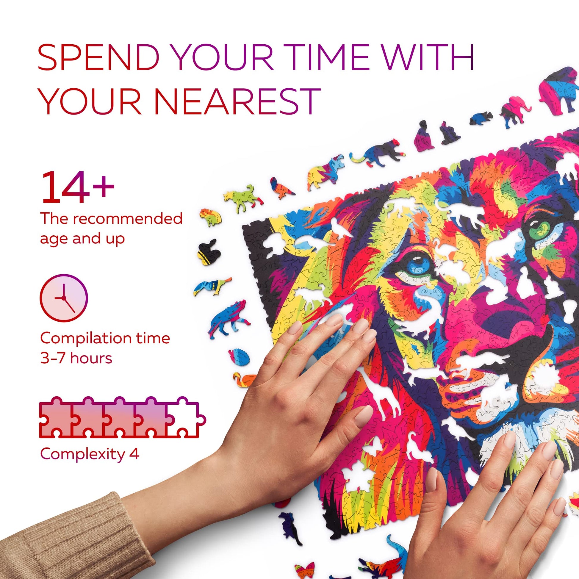 Woosaic Wooden Puzzles Hologram Lion, 500 Pieces, 15 X 11 Inches, Beautiful Gift Packaging, Unique Shape, Best Gift For Adults And Children. ?? Puzzle Set With Natural Theme. Enjoy A Relaxed Time With This Puzzle! Our Wooden Puzzles Are Available In 3 Sizes And Consist Of Pieces In The Shape Of Forest Animals And Trees. ?? Wonderful Colours And Details: Our Product Is Characterised By Excellent Print Quality And Elaborate Laser-Cut Parts. When Your Wooden Puzzle Is Finished, You Can Hang It In The Living Room As A Stylish Decoration. ?? Fun For All Ages. Let Your Children Train Their Problem Solving And Thinking Skills With This Wooden Puzzle Or Use It To Relieve Stress After A Long Day Of Work. It Is Great For The Whole Family! ?? A Gift That Everyone Will Love. Are You Looking For A Thoughtful Birthday Or Christmas Gift? These Unique Wooden Puzzles Are The Perfect Choice! Give Your Loved Ones Hours Of Entertainment. ? ?