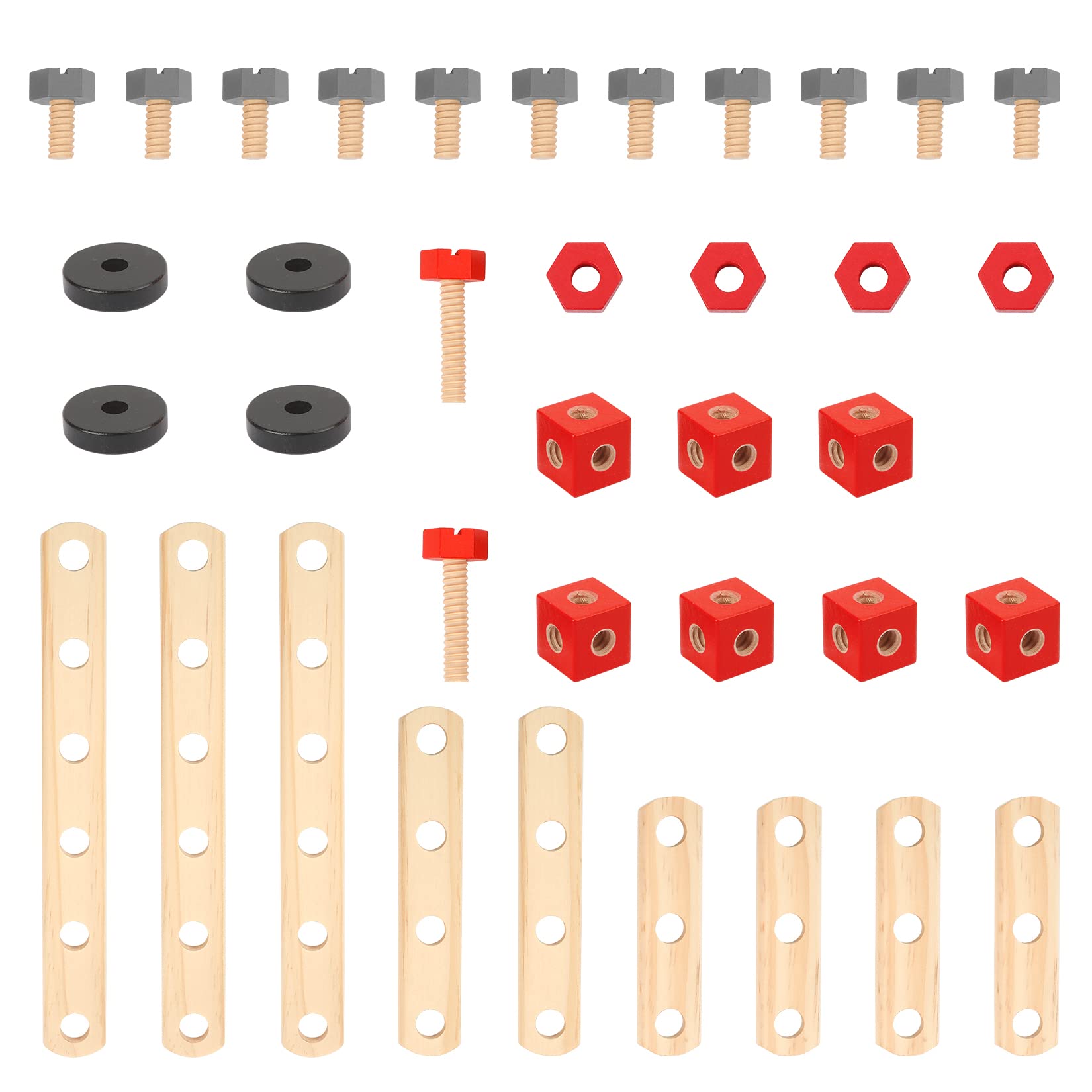 - Q: How many pieces are included in the WORKPRO Wooden Workbench Kit? A: The kit includes a total of 70 pieces, comprising 37 wooden nuts and bolts, 27 workbench pieces, and various essential tools like a wooden wrench, screwdriver, saw, and hammer.