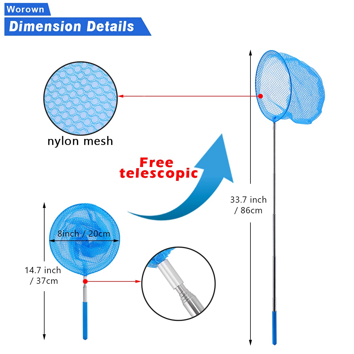 View compareWorown 1 Pack Telescopic Butterfly Nets, Extendable Fishing Nets with 1 Folding Water Buckets for Catching Insects Bugs Playing