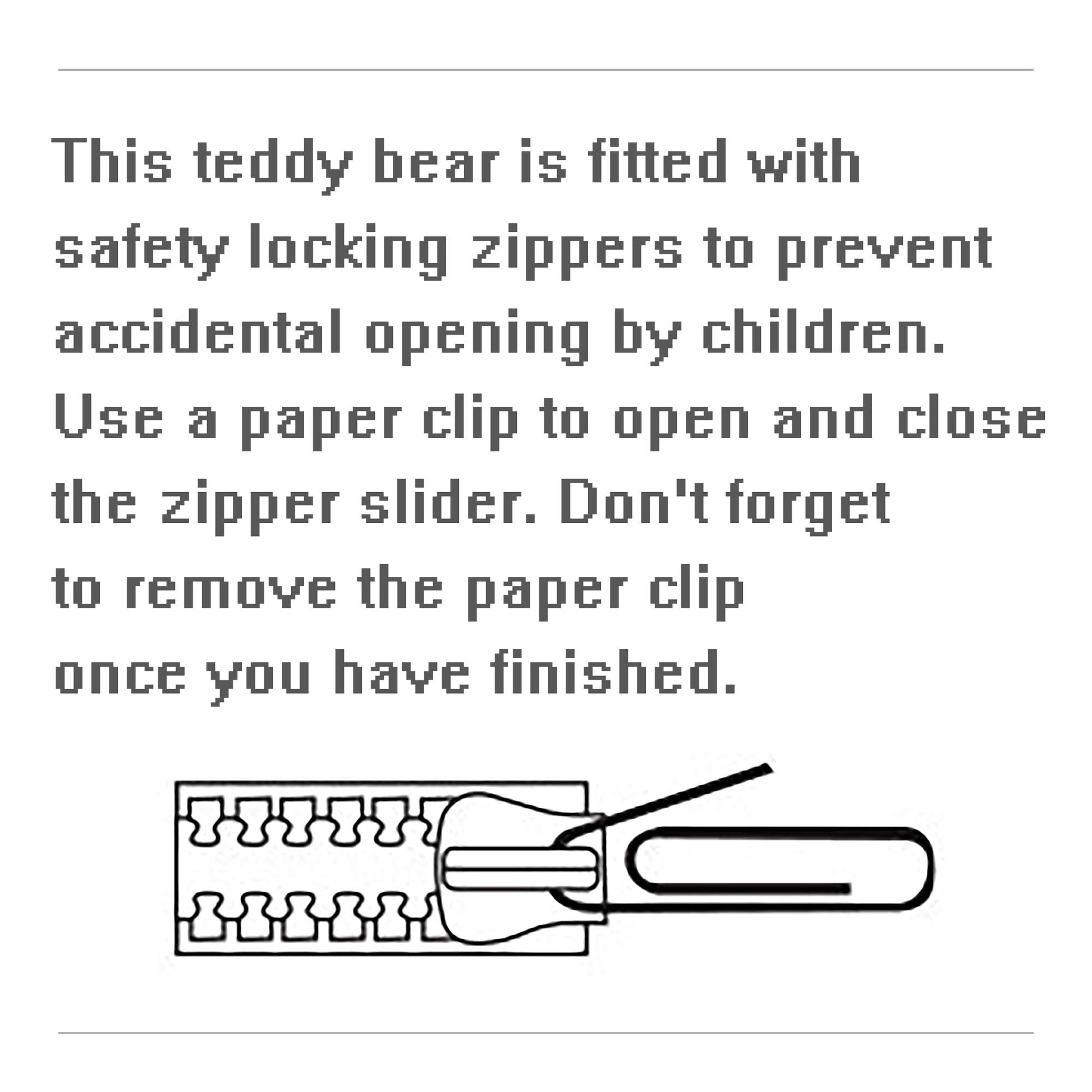 - Q: How do I clean the teddy bear? A: This teddy bear features a child-proof zipper on the back, allowing you to easily remove the stuffing for washing. You can wash the plush cover separately to keep it clean and fresh.