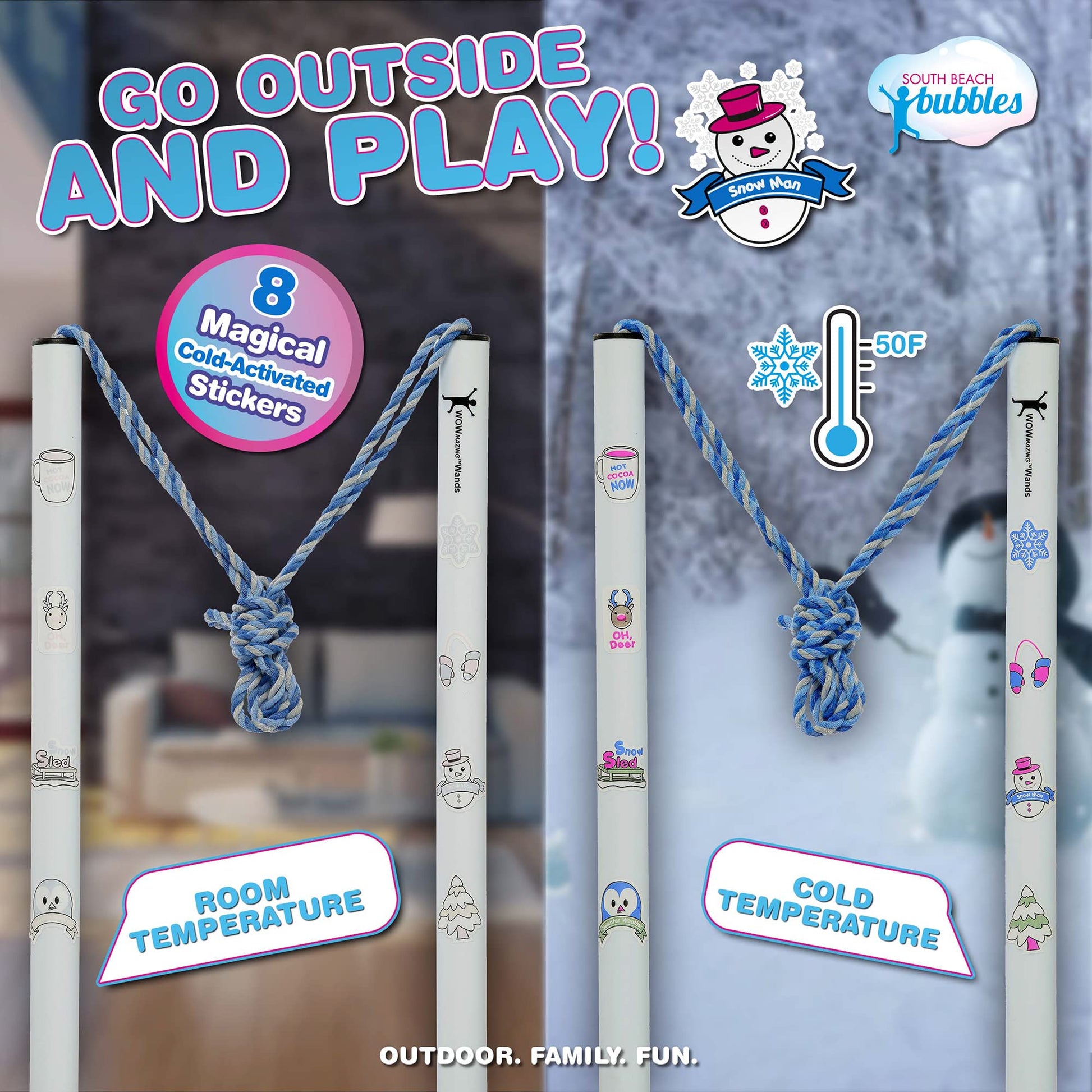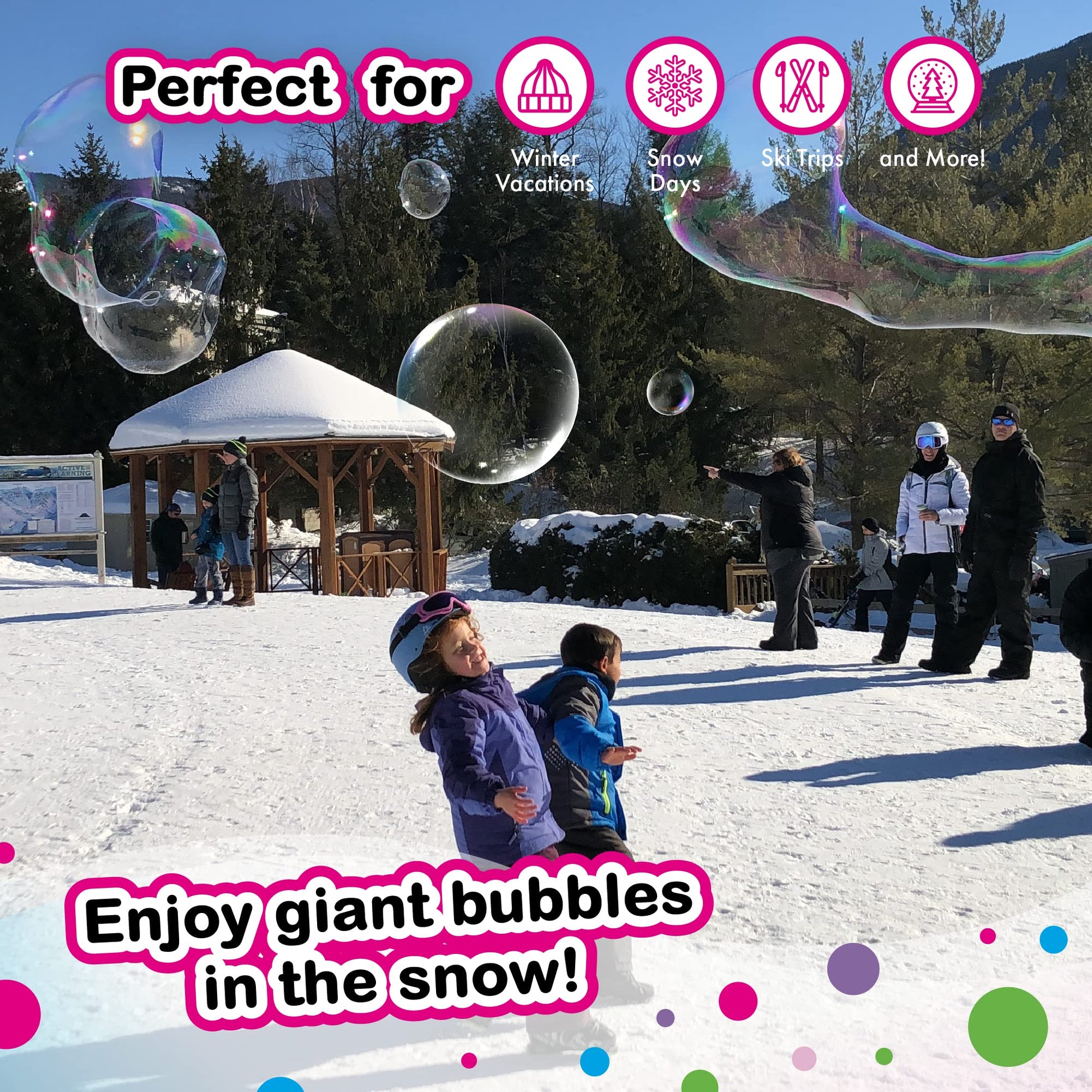 WOWMAZING Giant Bubble Kit Winter - Bubble Wand 2 Big Bubbles Mix Pouches 8 Cold-Activated Stickers for Outdoor Winter Fun |Bubbles Made in USA