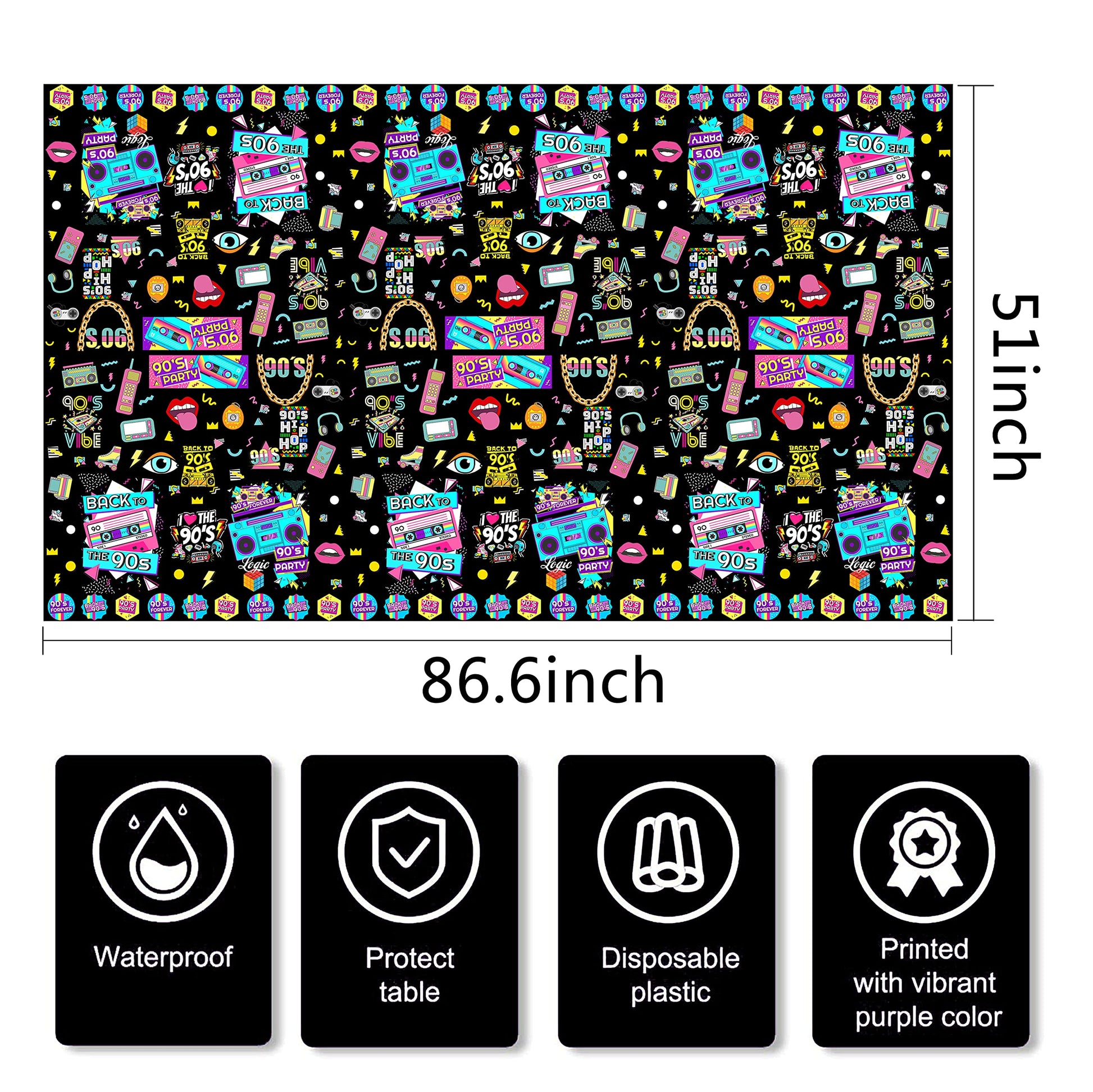 WOXIN 3 Pack 90s Party Tablecloth, Back to 90s Hip Hop Party Birthday Table Cover for 1990s Theme Party Decorations Supplies