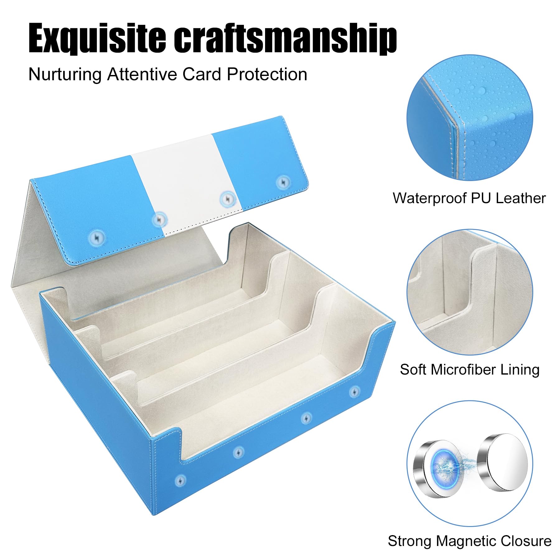 - Q: How does the magnetic closure work on this card storage box? A: The box features four pairs of sturdy magnetic closures that keep the lid securely shut, protecting your cards during transport and preventing accidental opening.