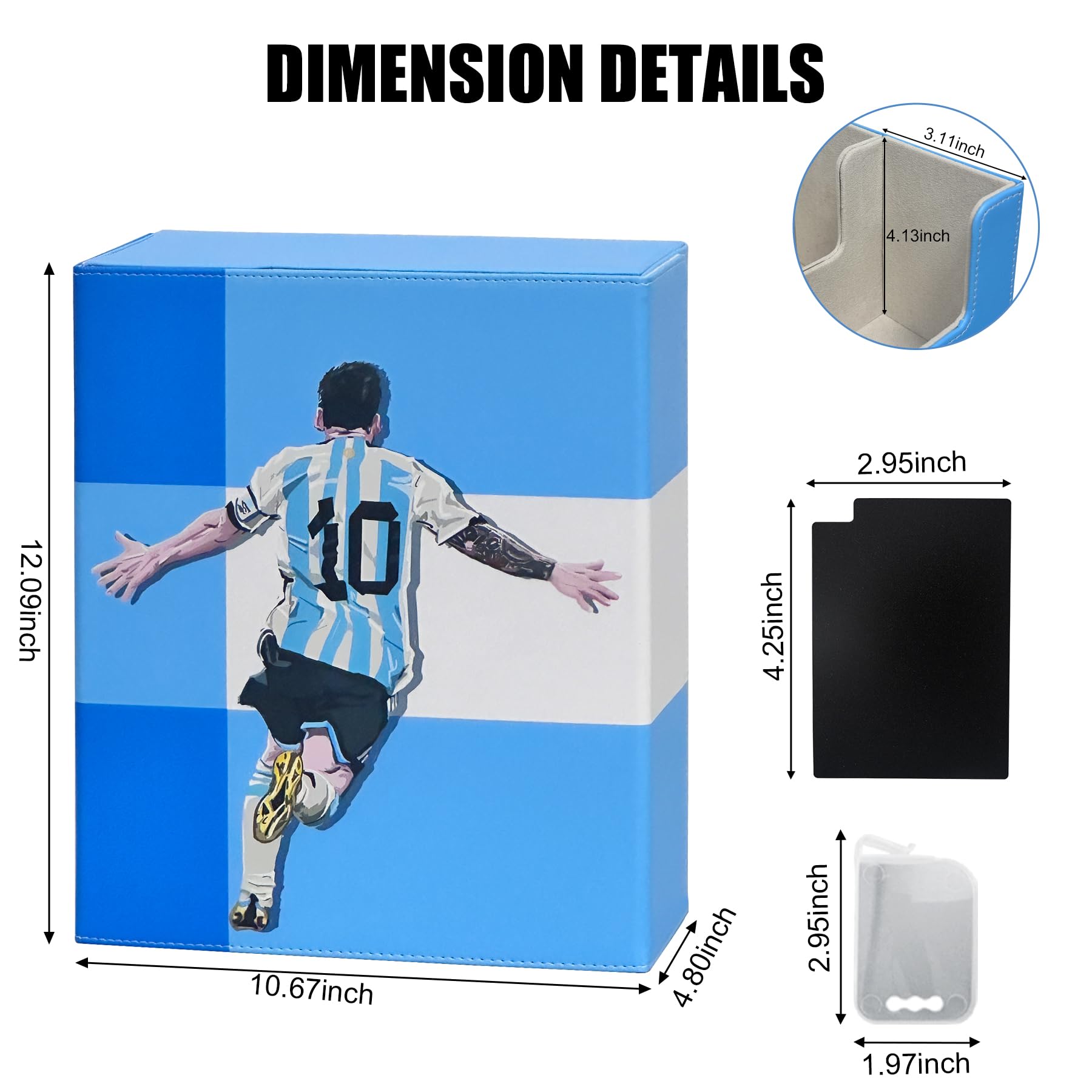 - Q: Can this box accommodate different types of trading cards? A: Absolutely! The WTVIDAS Soccer Card Deck Box is designed to fit a variety of trading cards including Magic Commander, MTG, YuGiOh, and other collectible cards with a maximum size of 3.11x4.13 inches.