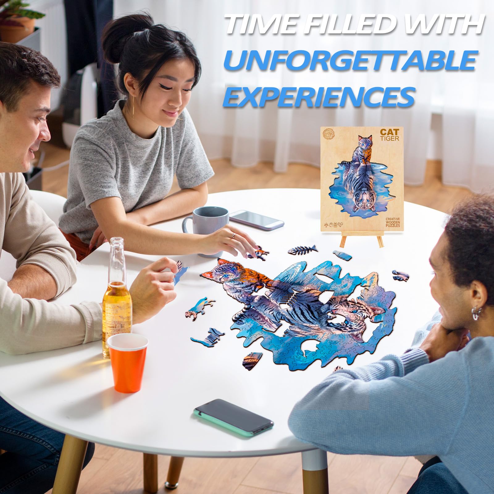 Wudhank Wooden Puzzles for mature-themed Cat Tiger Wooden Jigsaw Puzzles Unique Shape Wooden Jigsaw Puzzle Best Gift for Family Game (S-8.4 * 6.8in-95pcs)