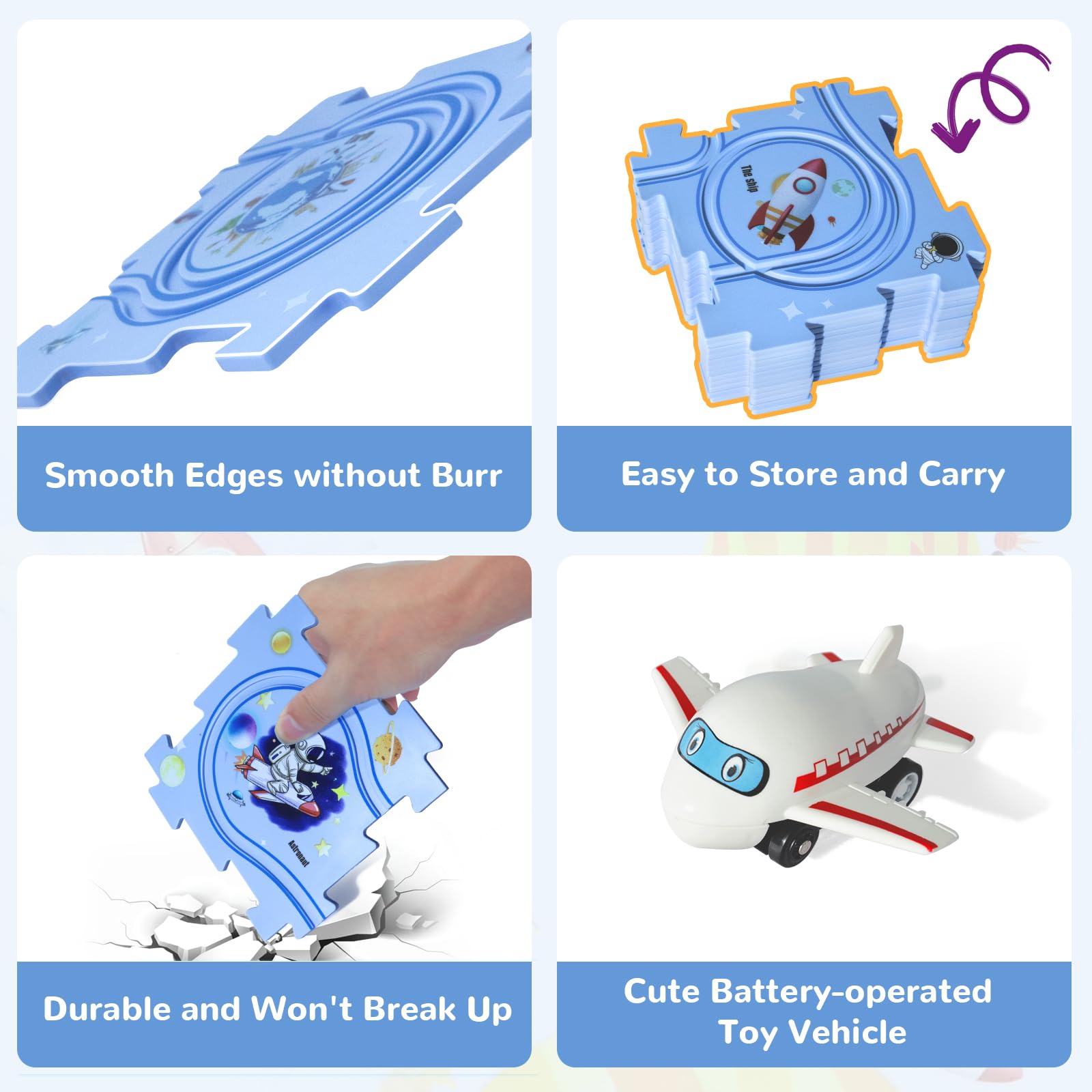 • Q: Is the toy safe for young children? A: Yes, the puzzle track car play set is made from high-quality ABS plastic with carefully polished edges, ensuring it is safe for children to handle.