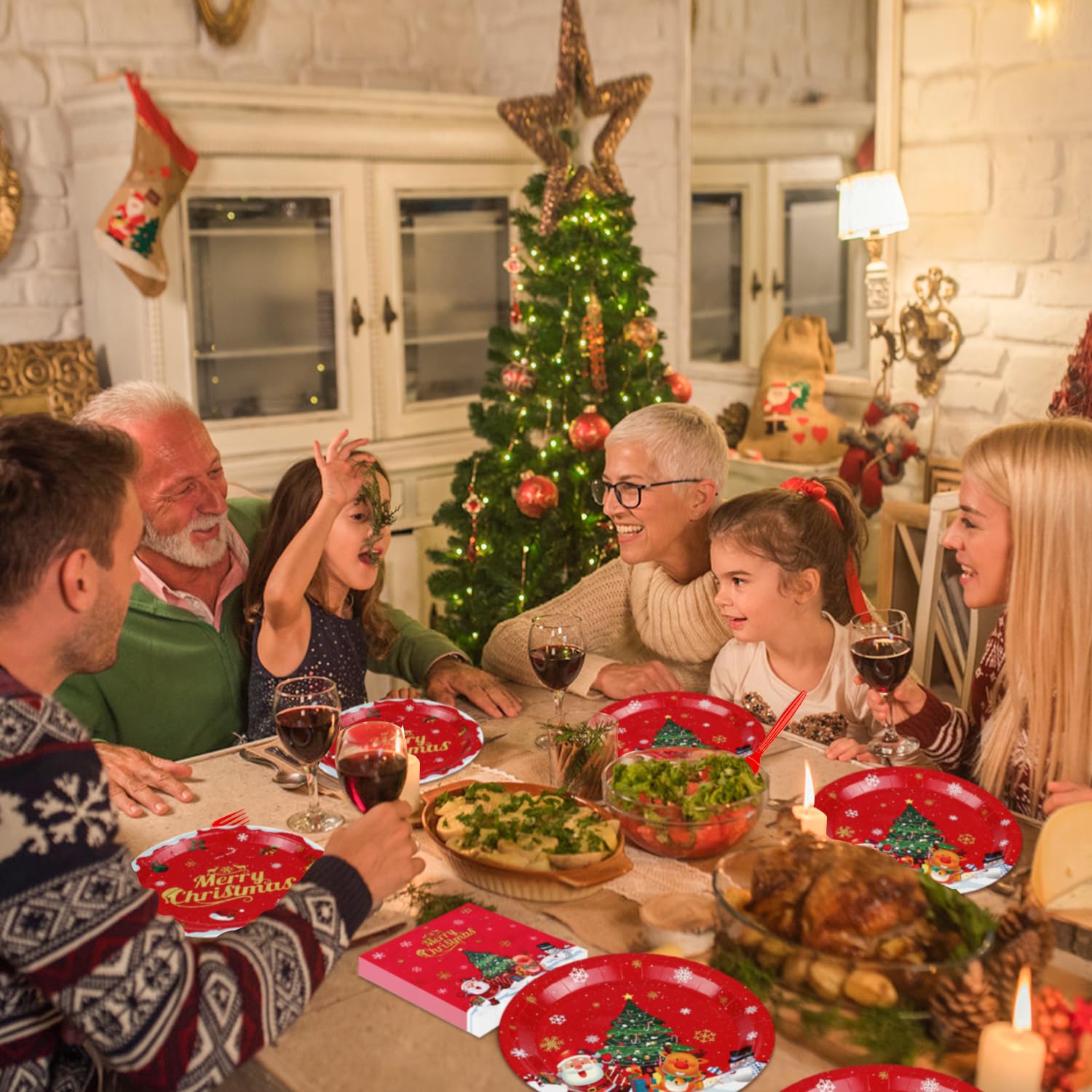 Invite your friends and family to this fantastic Christmas party! Our Christmas party plates are perfect for serving their favorite foods, while our matching Christmas napkins and other decorations will bring the whole party together. All of the Christmas tableware needs no washing up, it can be making cleanup a breeze, spend less time cleaning up. Whether youre hosting a Christmas party or any other event, these tableware are perfect for creating a festive and whimsical atmosphere. Please use the Christmas party decorations to liven up the party venue and make this an unforgettable moment for your kids, yourself, and your family! Package & Size: 20 x dinner plates(9 /23cm) 20 x dessert plates(7 /18cm) 20 x napkins(13 /33cm) 20 x forks(6 /15cm) Warm Tips: 1. Due to manual measurement, please allow slight size errors. 2. Please feel free to contact us if you have any questions about this product. Serving you is our pleasure.