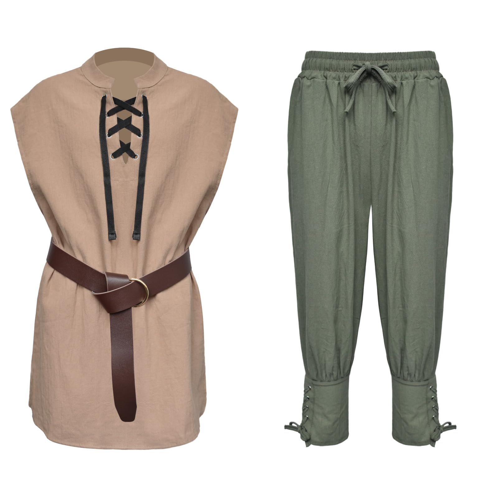 Boys Kids Renaissance Pirate Set Medieval Sleeveless T Shirts with Belt and Ankle Pants Viking Lace Up Scottish Tank Tops Halloween Costume Boys Medieval Shirts and Ankle Pants with Belt, Kids Renaissance Viking Pirate Scottish Cotton Tank Tops Costume 5-12Years