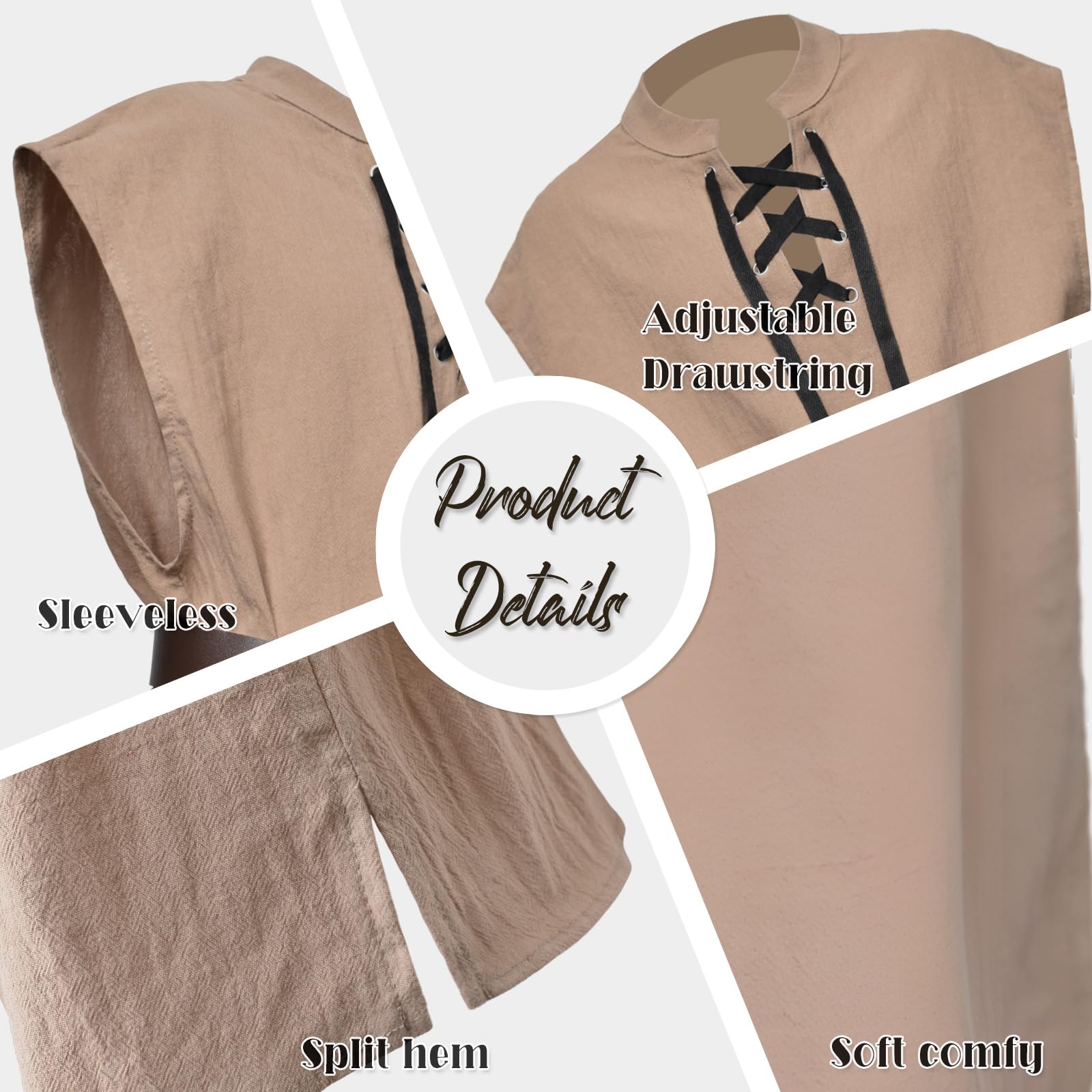 XonyiCos Boys Renaissance Pirate Set Medieval Sleeveless Lace Up Shirts & Belt and Ankle Pants Viking Scottish Halloween Kids Co