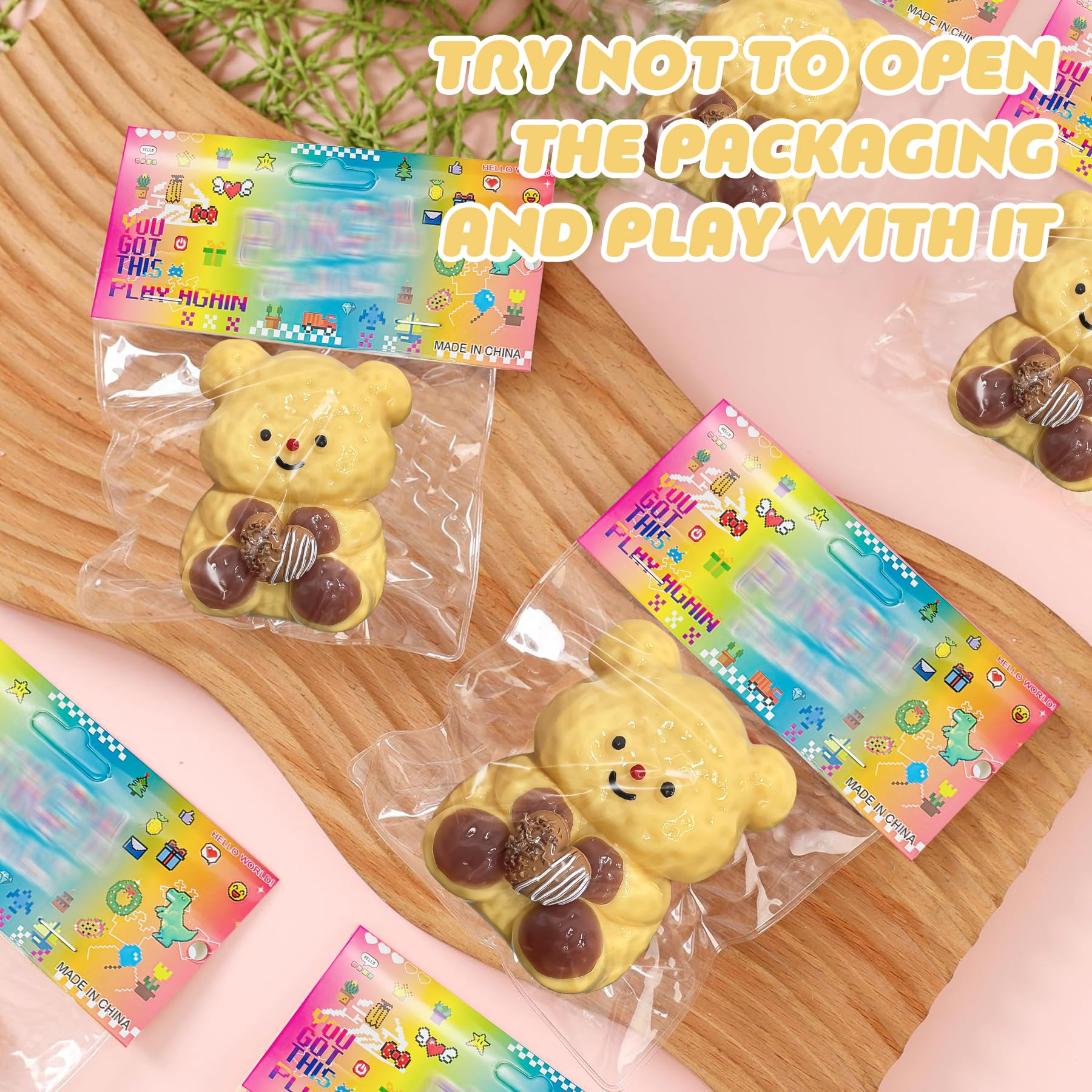Warm Tips: Although our gummy bear toys are cute and tempting, they are not edible. Its soft surface has strong stickiness. To maintain the best hand feel and prevent dust adhesion, it is recommended to put it back in the original OPP bag when not playing. If you want to play to play with the gummy bears toys with bare hands, please make sure your hands are clean or wear clean gloves to maintain their taba stress toys durability. | Adorable Bear Design & Tactile Fun: This 2pc butter bear stress toy, measuring 2.48
