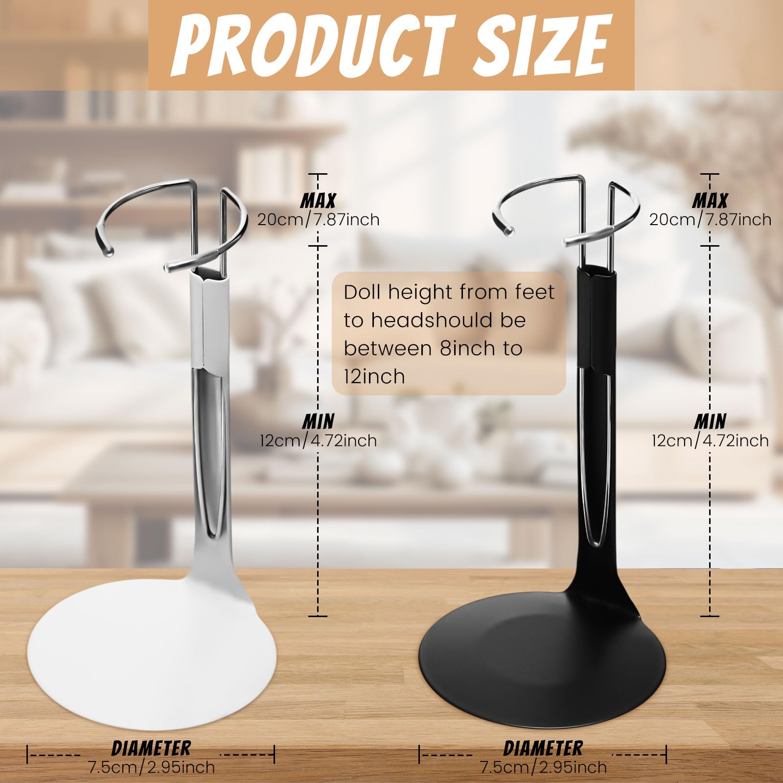 Features: These action figure display stands are not just functional but are designed to maximize the aesthetic appeal of your precious dolls. With their adjustable features and robust structure, they truly bring out the beauty in each doll, showcasing them in the possible way. Our stands for action figures are a sweet gift for anyone who likes to collect dolls for birthdays, Christmas, and other holidays. Specifications: Material: metal Color: black, white Size: 7.8 x 3 inches (H x W) Package includes: 12 x Adjustable display stands for dolls Notes: Manual measurement, please allow slight errors on size. The color may exist a slight difference due to different screen displays. Little ones should use our product under the supervision of adults. Please keep it away from people under 6 years old.