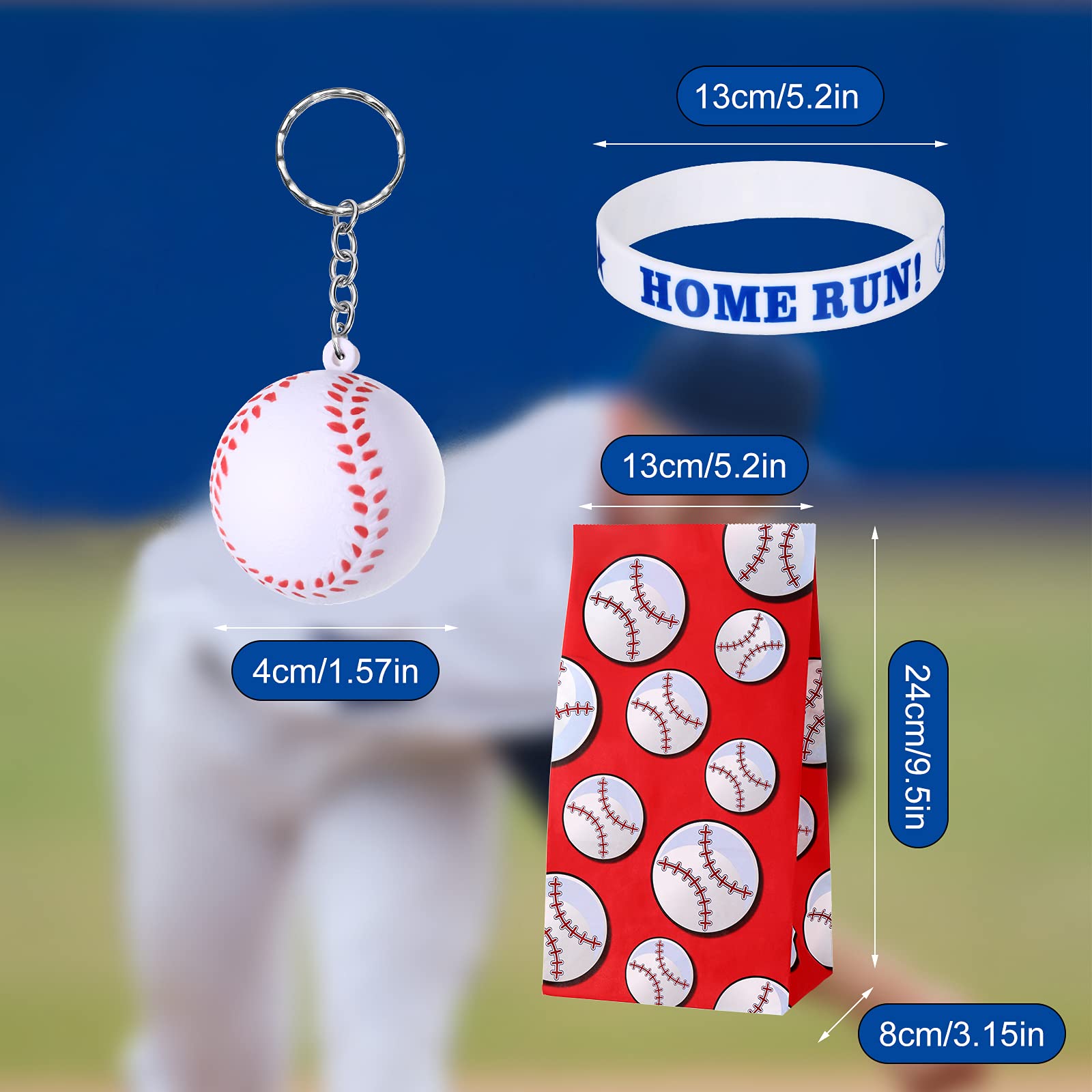 Yaomiao 36 Pieces Baseball Party Favors Set, Include 12 Baseball Treat Bags 12 Mini Baseball Keychains 12 Silicone Baseball Brac