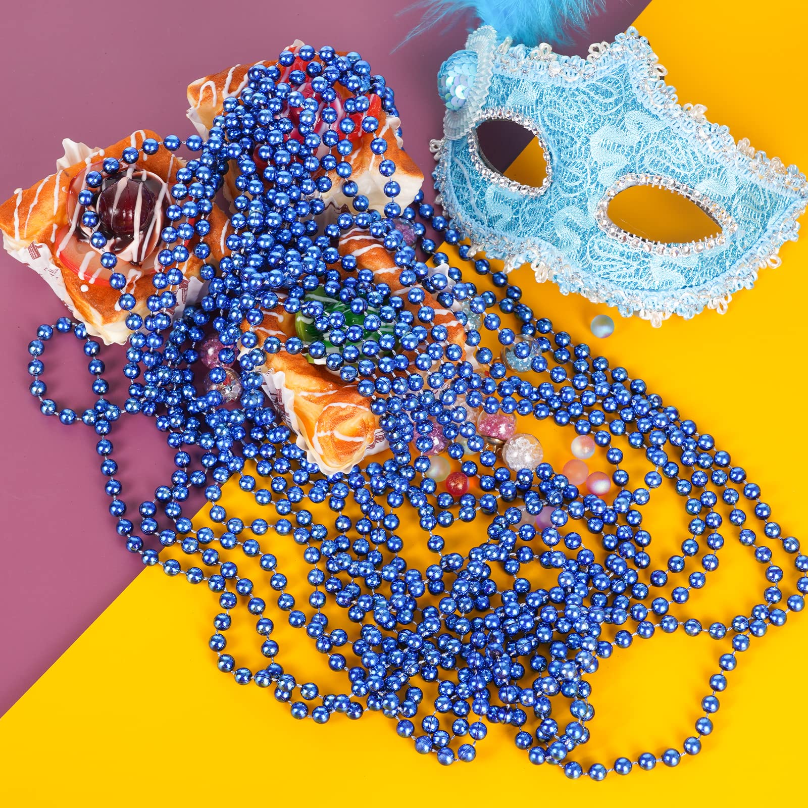 144 PCS Blue Bead Necklaces, Blue Mardi Gras Christmas Bead Necklaces, Blue Patriotic Necklace, 33 Inch Round Beaded Necklaces for Mardi Gras Christmas 4th of July Festive Events