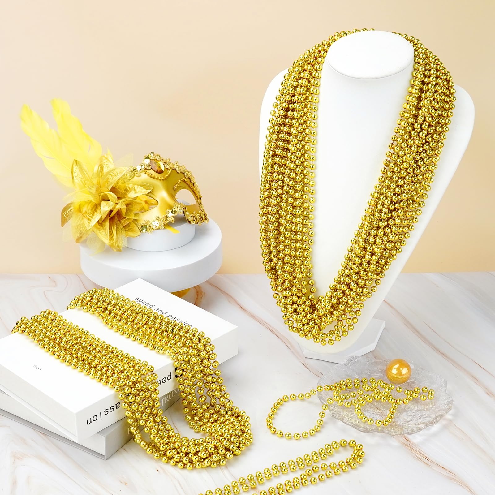 - Q: How long are the gold bead necklaces and what is their design? A: Each gold bead necklace measures 33 inches long and features round beads, making them suitable as wearable decorations. The length and design ensure they can be easily worn or used in various decorative ways.