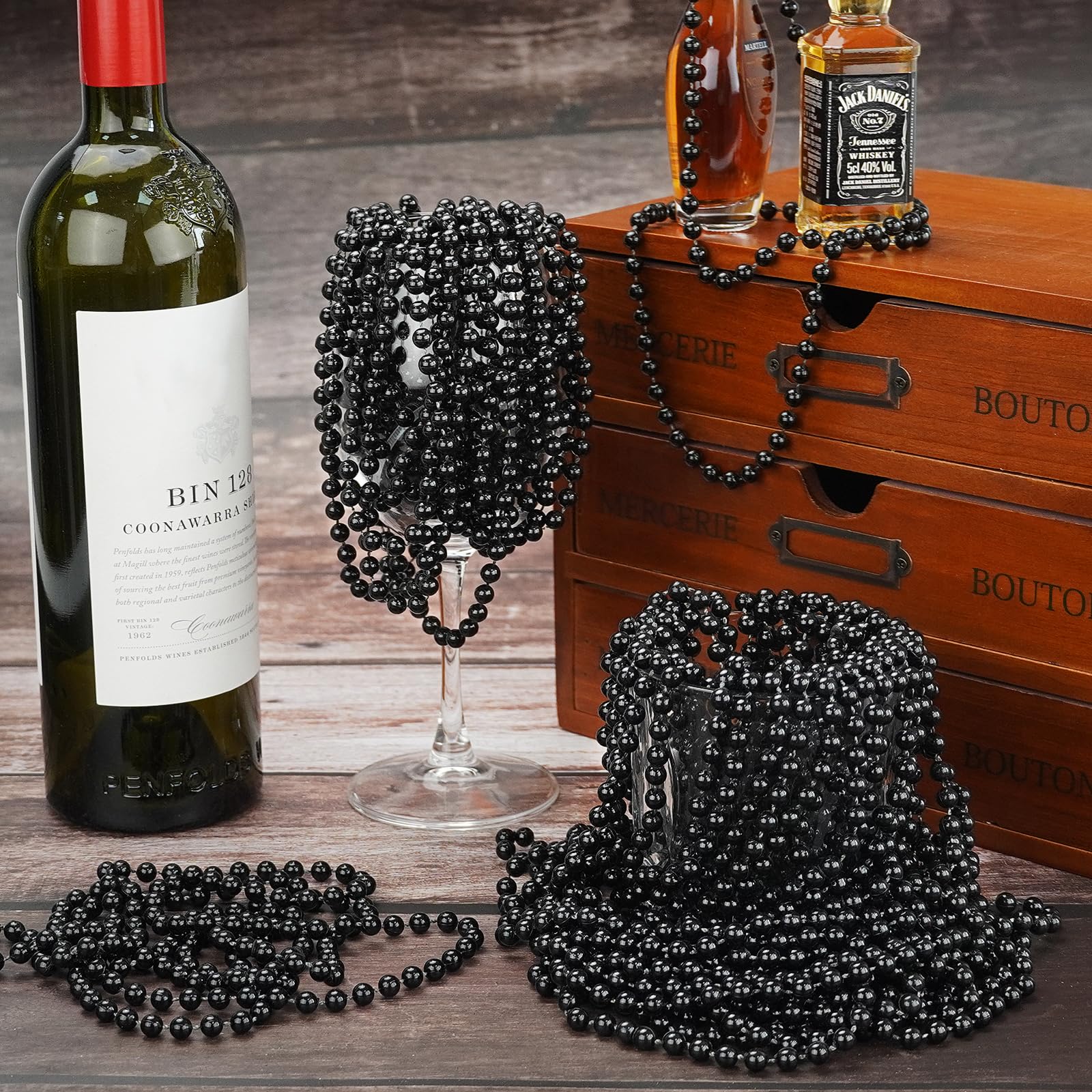 View compareYAXINRUI 24 PCS Black Bead Necklaces, Black Mardi Gras Beads, Halloween Beads Necklaces, New Year Eve Necklaces, 33 Inch Black B