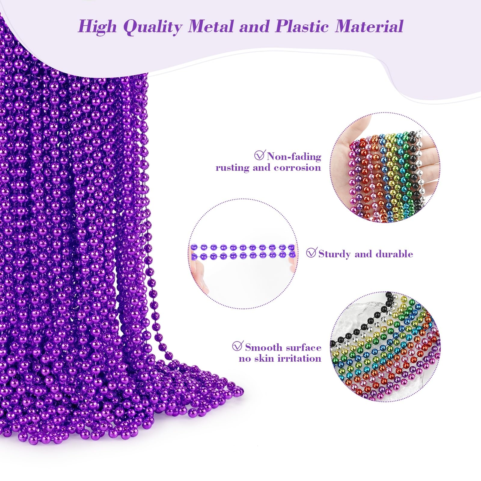 72 PCS Purple Bead Necklaces, Purple Mardi Gras Beads, Halloween Beads Necklaces, 33 Inch 7 mm Round Beaded Necklaces Costume Necklace for Mardi Gras Christmas Halloween Party Favors