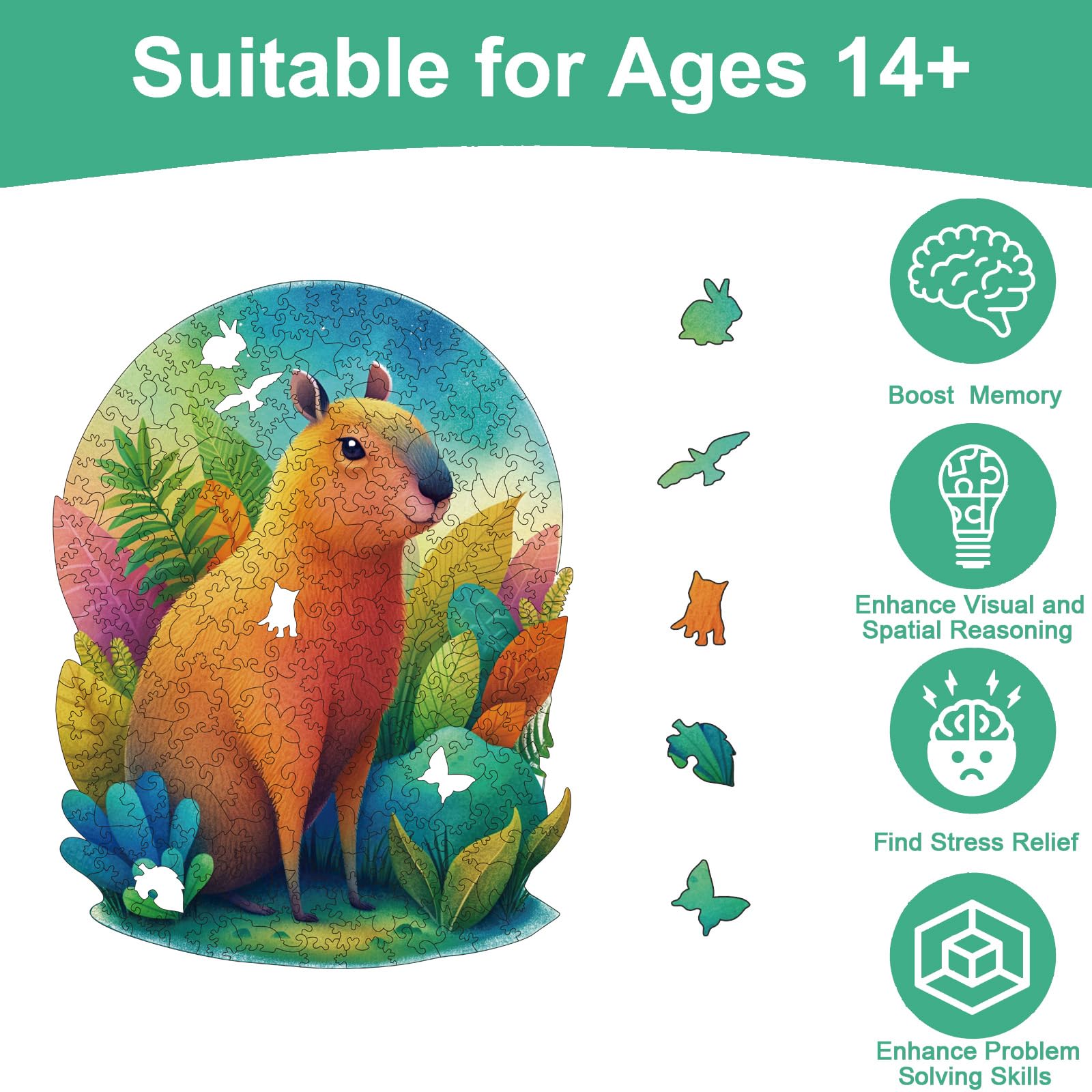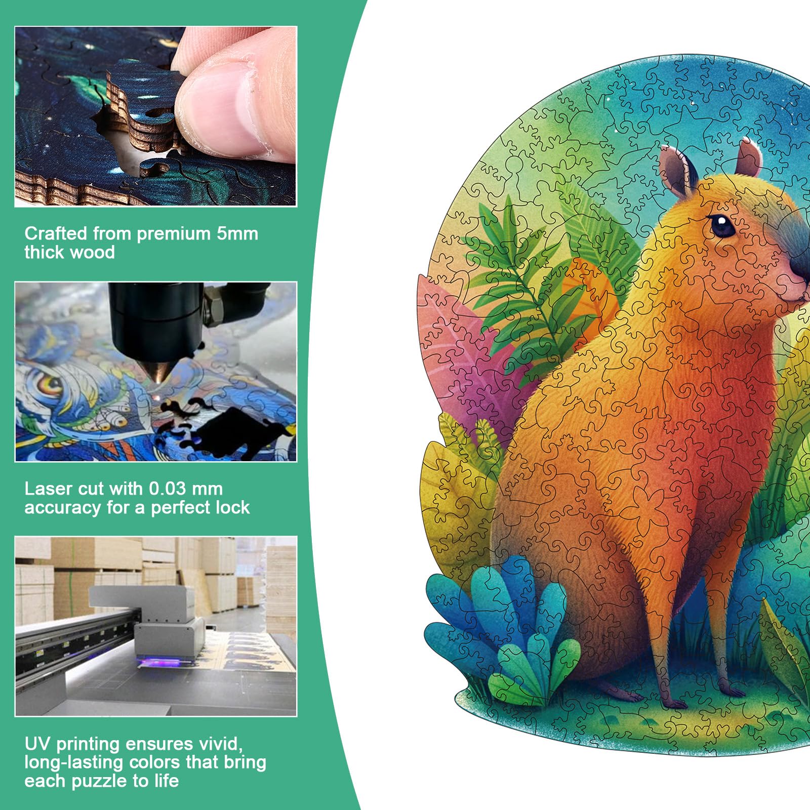 YJacuing Wooden Jigsaw Puzzles for Adults, 200 Piece Unique Animal Shaped Premium 5mm Wood Puzzles Family Game (Capybara, Medium