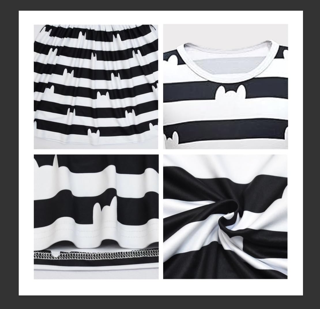 This cartoon classic black and white striped dress design has been Novelty designed and is a favorite of anime fans.Made of breathable milk silk fabric, smooth and soft to wear.Cat ear pattern printing makes the characters come to life.The lovely cat themed dress up, make your little cuties unique . Suitablet for birthday Cosplay Christmas and Halloween Gifts for fans 3-9 years old?Every little cuties will love entering the world of dolls with this super cute costume.