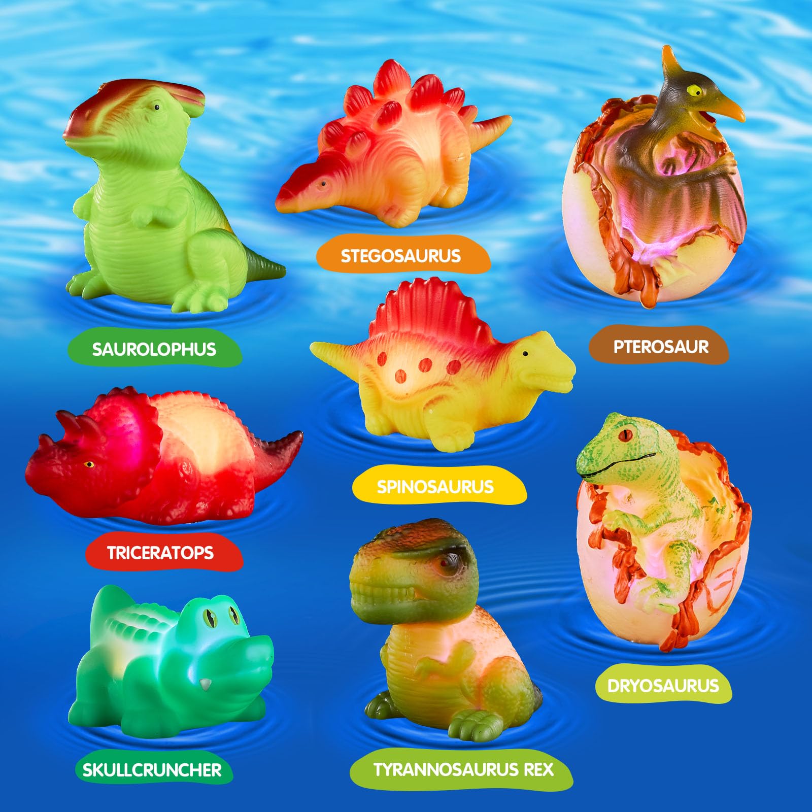 View compareYoliyogo Dinosaur Toy Bath Floating Toy With Auto Flashing Early Learning Toy Dinosaur Theme Model 8 Pcs Bathtub Shower Toy Gift