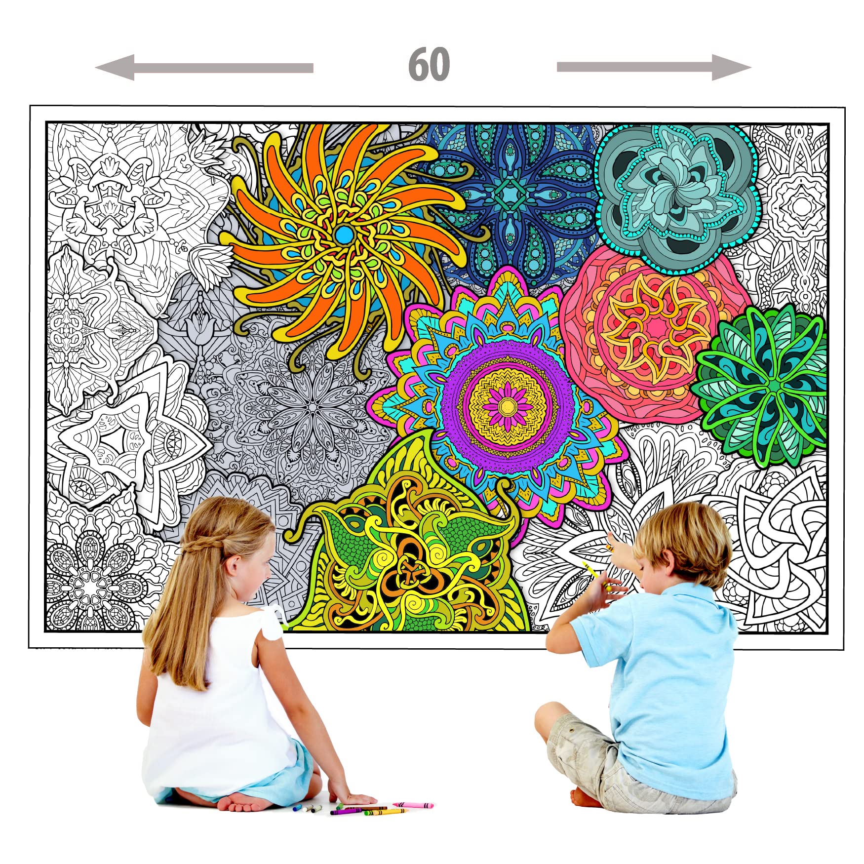 View compareYoung N Refined 2 Pack of Giant Coloring Posters of Flowers and Mandala collages Folded Version (42x60)