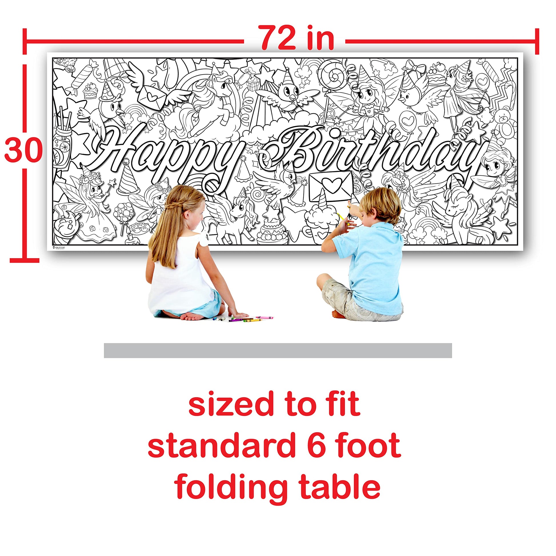 Looking for the perfect Birthday collaborative activity which also acts as a decoration? Look no further than this giant-sized coloring page tablecloth for girls. Featuring fairy princesses and unicorns. These intricate designs look great and will keep you and your little ones busy for days!