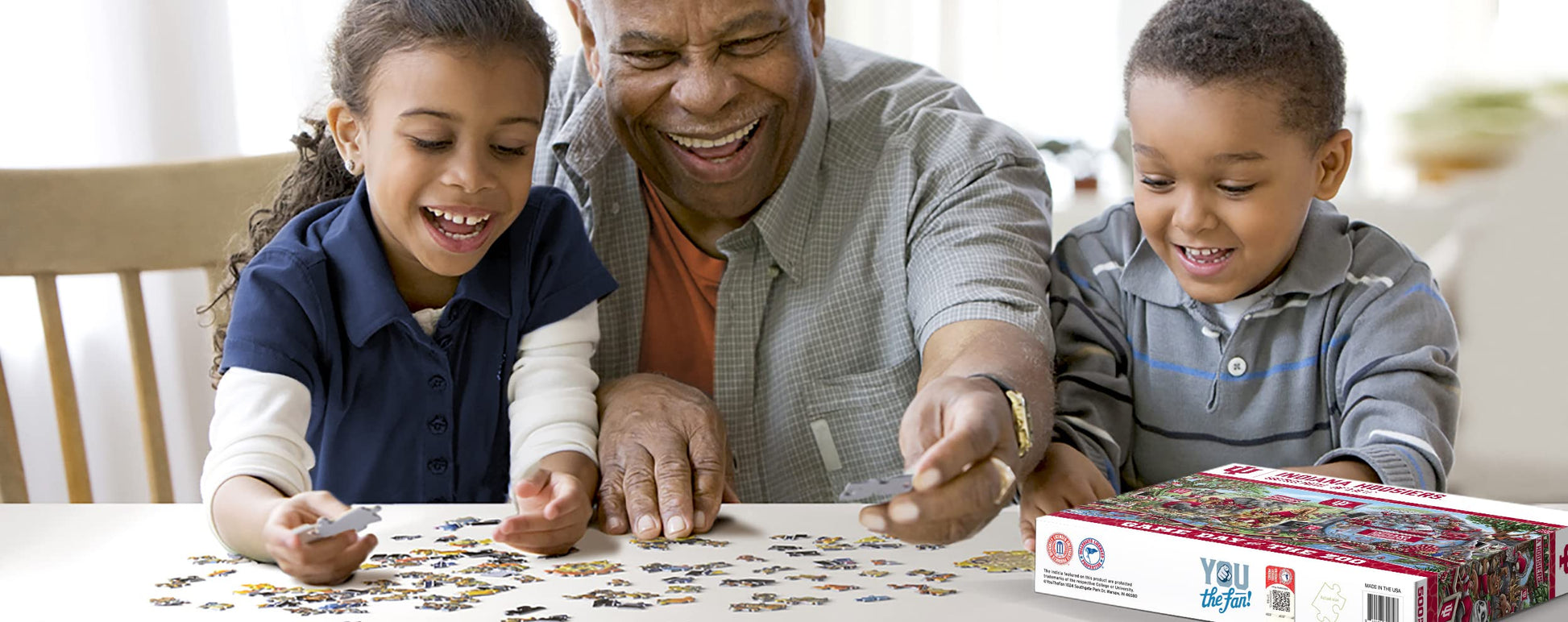 Spend game day cheering on your team surrounded by these party animals! Original hand-drawn illustrations bring to life a wild time at the zoo with fans as excited as you are. This 500-piece puzzle is packed with fans and packed with FUN.