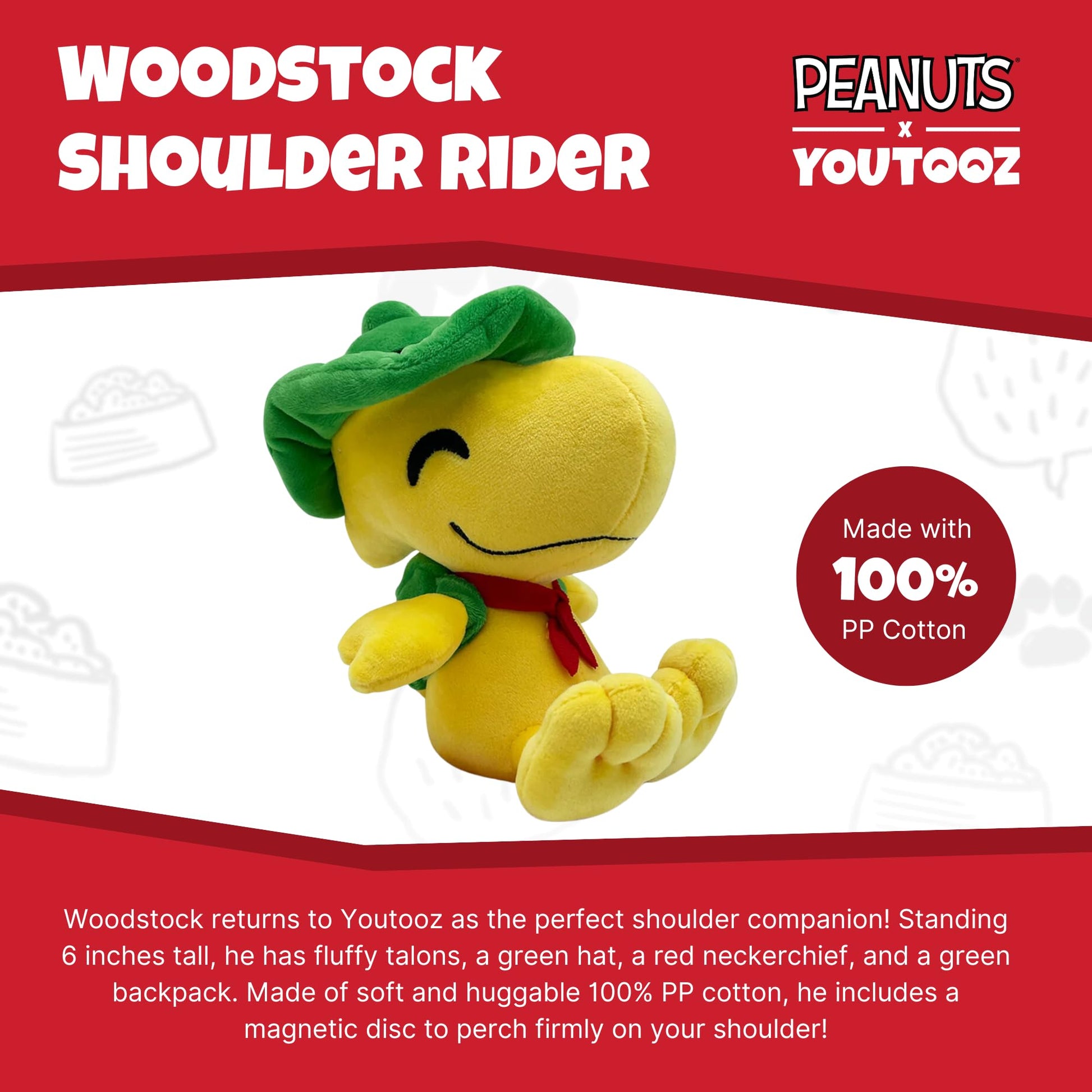 Youtooz Peanuts Woodstock Shoulder Rider 6 Plush - Collectible Plushie From Youtooz Peanuts Plush Collection