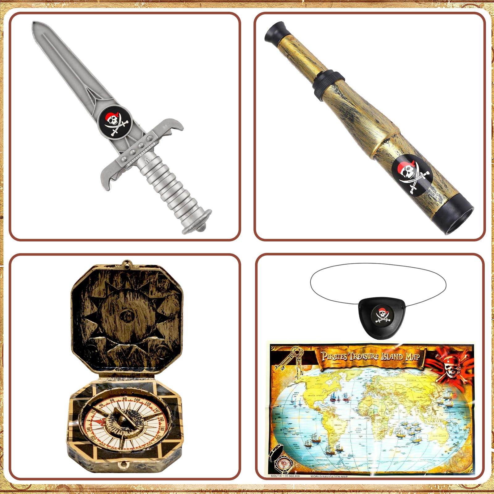 ?Become a Bold Young Pirate Captain?- Inspired by classic pirate movies YPFonetoy halloween costume transforms boys into fearless adventurers! With bold red pants and iconic pirate accessories your child will embrace bravery treasure hunts and swashbuckling quests. Perfect for sparking imagination and heroic play! | ?Pirate Accessories for Ultimate Realism?- Includes 10 essential accessories : Pirate jacket belt pants hat eye patch decorative replica blade compass map binoculars and plastic eyecups. Every detail-from iconic pirate hat to the realistic toy decorative replica blade-creates an authentic pirate look making your child feel like a true buccaneer! | ?Perfect for Any Occasion?- Ideal for Halloween pirate-themed parties Renaissance fairs school events birthdays or daily dress-up play! Whether trick-or-treating attending a themed cruise or family event acting out pirate stories this versatile outfit ensures endless adventure and standout style. | ?Multiple Sizes for Growing Pirates?- Fits ages 3-12 years many sizes for you to choose(sizes 3-4T 4-6 7-8 8-10 10-12). The soft stretchy polyester fabric ensure comfort and mobility. Refer to the size chart for a perfect fit | ?After-sales service ?- We want every child to love their pirate journey! If the costume doesn