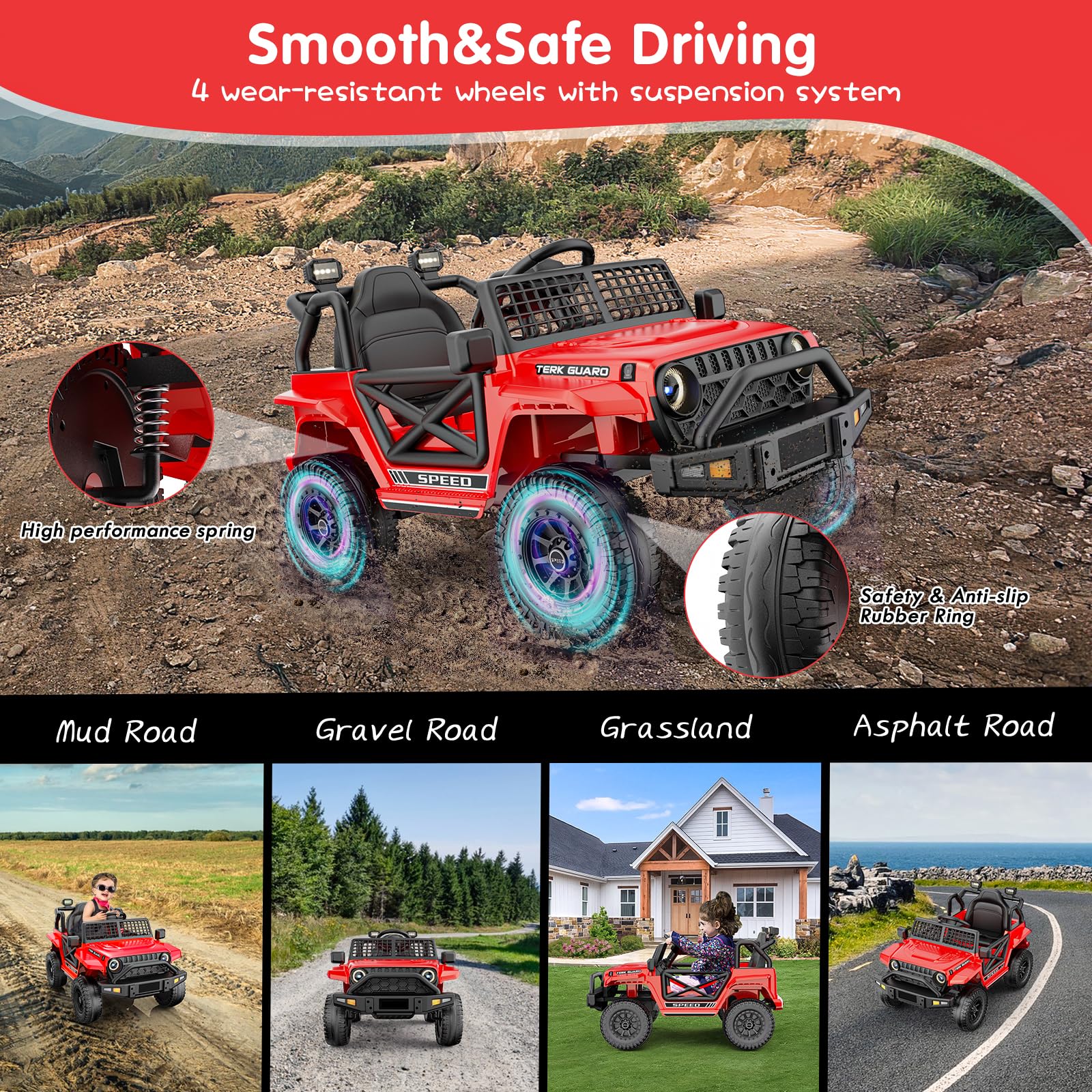 - Q: How does the parental remote control feature work? A: The parental remote control allows parents to control the ride on jeep car, providing three speed options and an emergency brake function for added safety while your child enjoys driving.