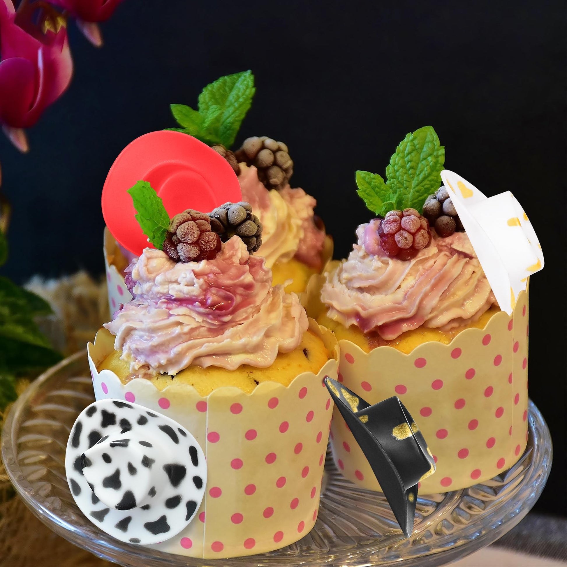 Material: These plastic mini cowboy hats are made of quality plastic. Sturdy and durable. | Size: The size of tiny cowboy hat measure about 2.17*1.85*0.7 inches. | Wide Application: Our plastic mini hats are great for bottle tops, desserts or cakes decoration. They are also can be placed for DIY decoration, dollhouse, jewelry making, clothing supplies and so on. | What You Will Get: 30 piece black with gold spot plastic mini western cowgirl hats, enough quantities to meet your decoration needs. | Cute Design: The cute miniature doll hat can bring you comfort, it is a nice gift for family, friends and colleagues in Christmas, birthday, party and other holidays.