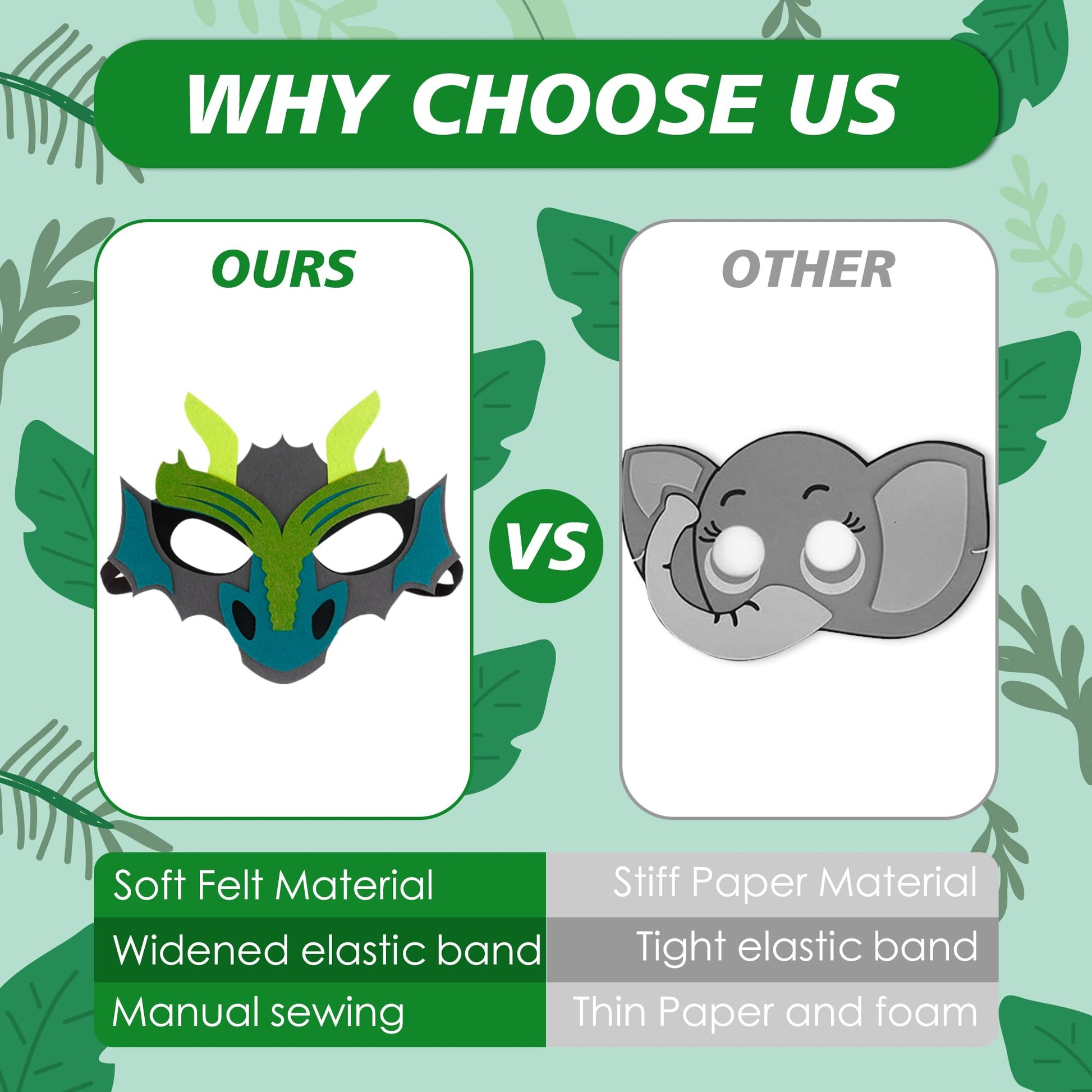 Zalmoxe Felt Dragon Masks for Kids Dinosaur Party Decorations for Fun Party Masks Birthday Supplies Decorations With Elastic Band