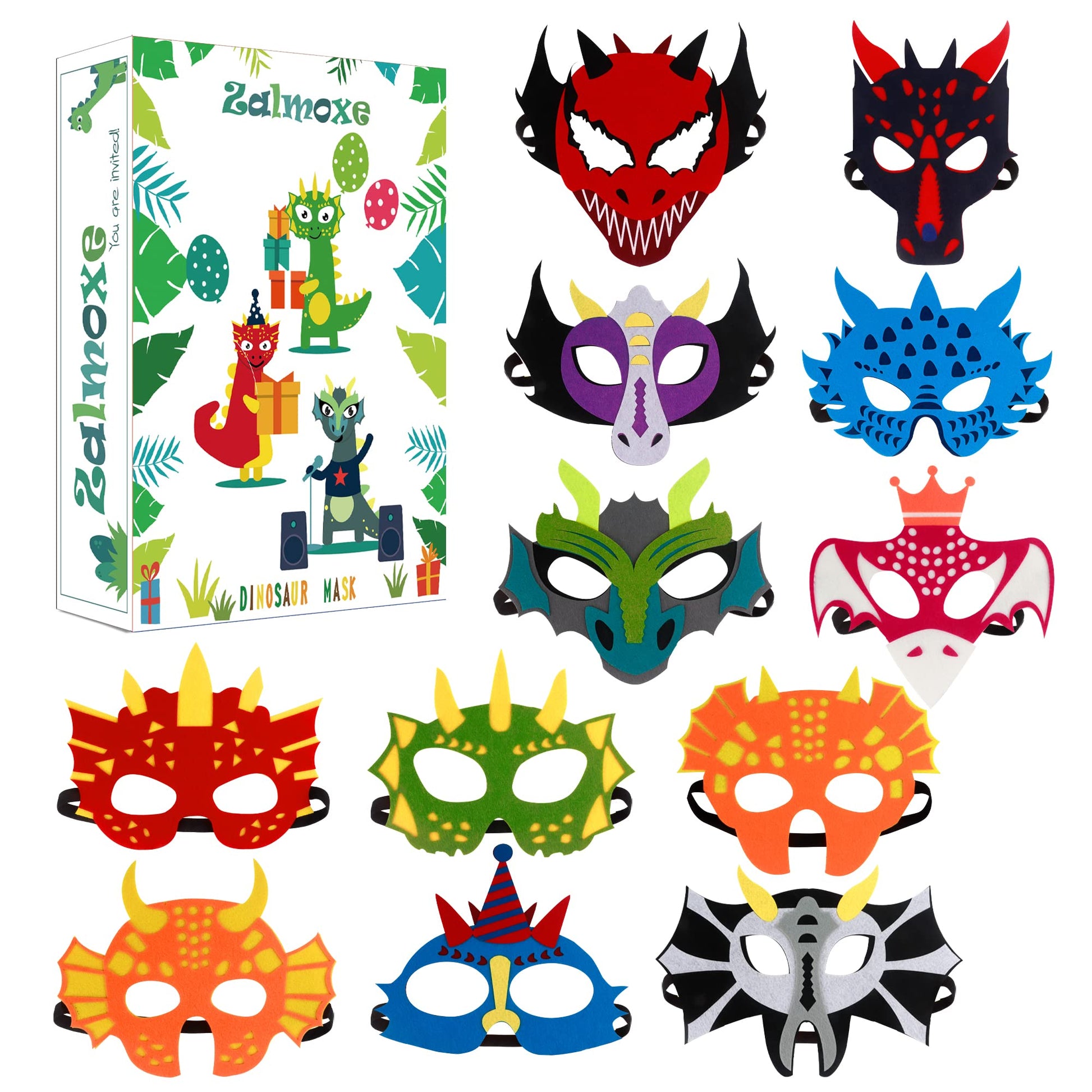 Zalmoxe Felt Dragon Dinosaur Masks For Kids Dinosaur Birthday Party Decorations Supplies Halloween Masks Dress-Up Costumes For B