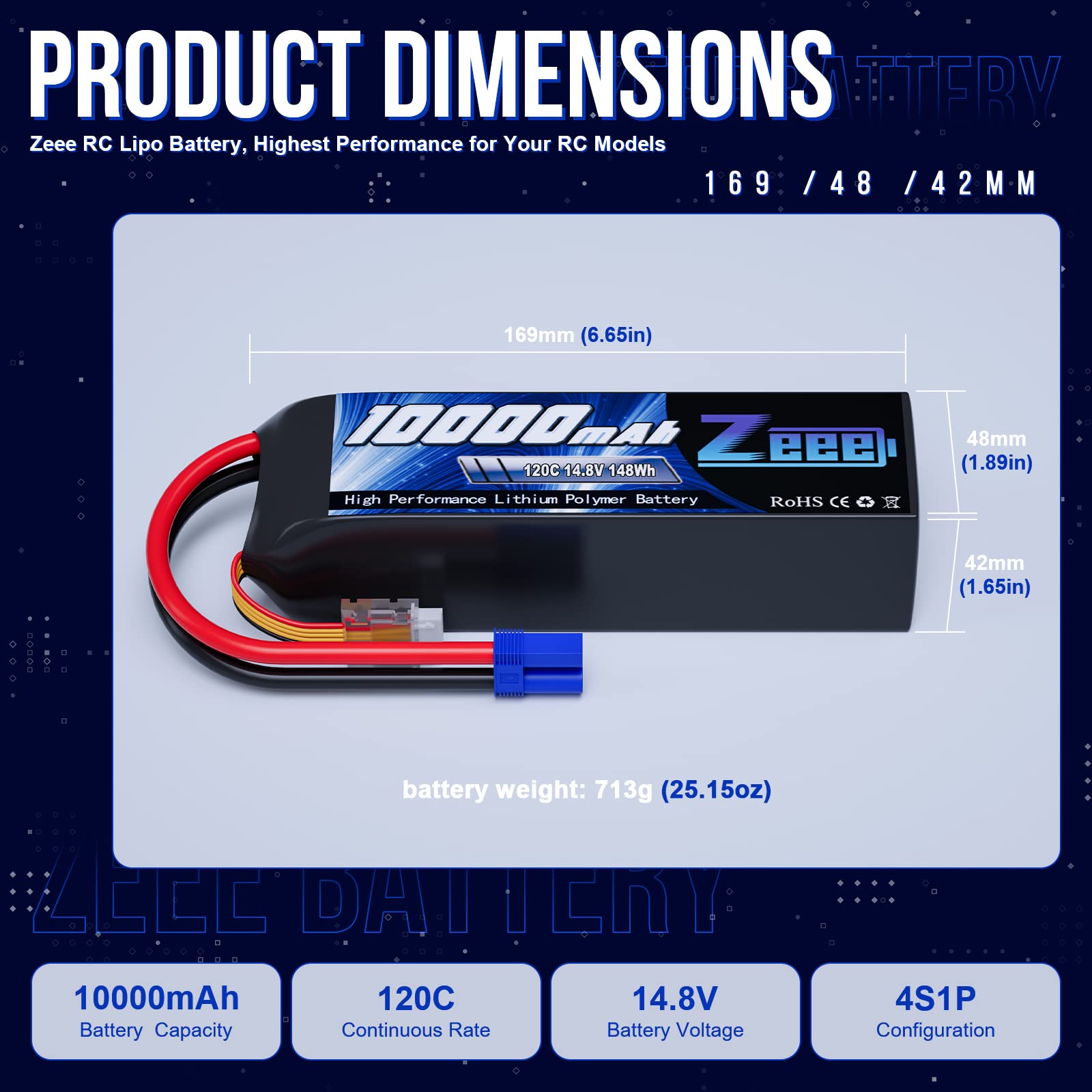 View compareZeee 4S Lipo Battery 10000mAh 14.8V 120C with EC5 Connector Soft Case RC Battery Compatible with Xmaxx RC Car Truck Tank Racing
