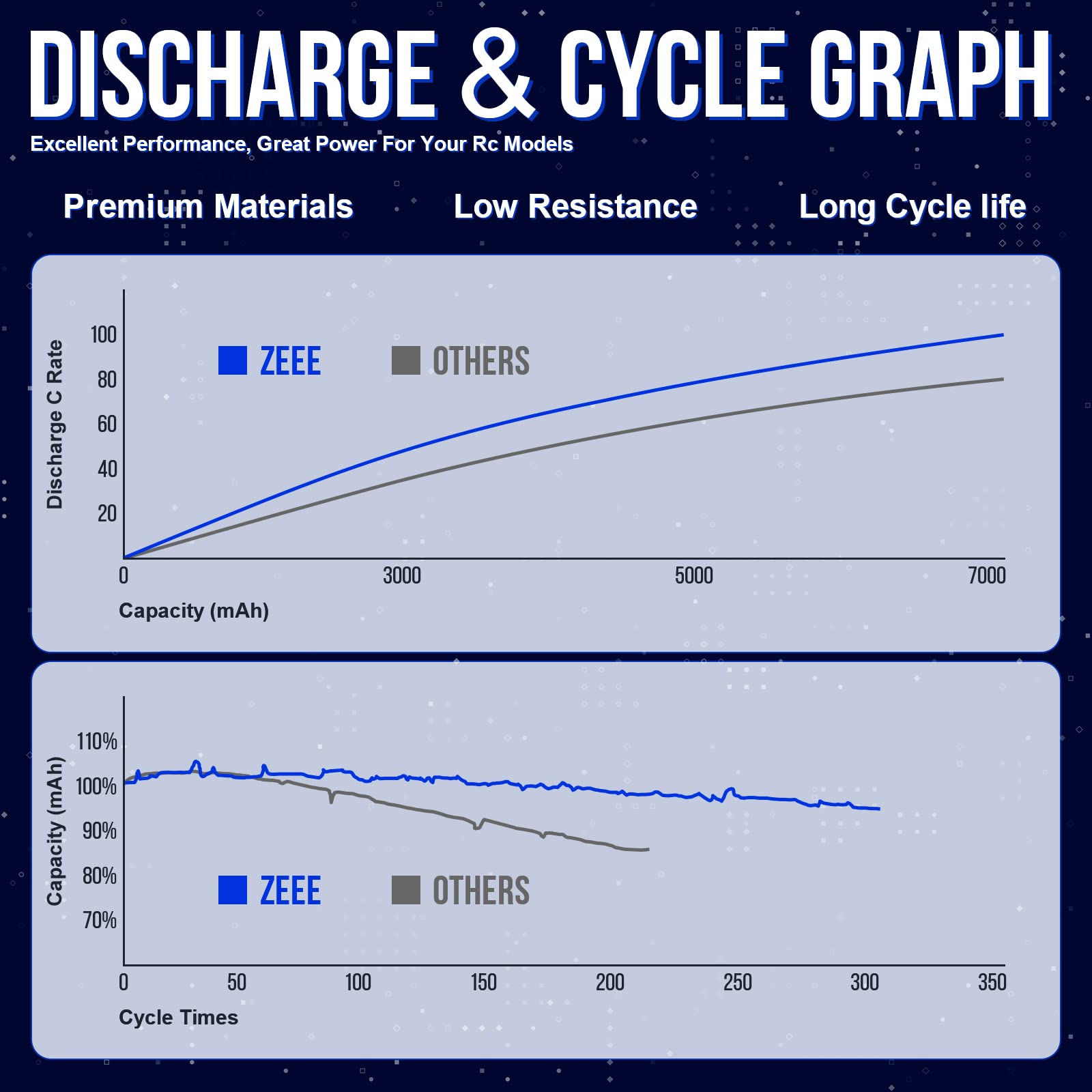 Zeee is a professional brand specializing in the research, development, production and sales of Li-polymer rechargeable batteries. Features - Light weight, long cycle life, no memory-effect. - High power battery, high capacity provide your rc model more energy, more enjoyment. - High Discharge rate, make your rc vehicle work powerfully. Specification Brand: Zeee Cell Number: 4 Voltage(V): 14.8V Capacity(mAh): 10000mAh Discharge Rate (C): 120C Charge Plug Type: JST-XH Discharge Plug Type: EC5 Plug Battery Dimension: 169*48*42mm/6.65*1.89*1.65inch Approx Weight: 713g/25.15oz Compatible RC Models - Zeee 4S 10000mAh Lipo Battery special designed for professional RC car hobby models.(only if the voltage, weight, dimension and plug match) High Performance - Zeee 14.8V lipo battery 10000mAh with 120C discharge rate offers you very high power and very long run time for your RC cars. - Zeee 14.8V 4S RC lipo battery 10000mAh provides your batteries very solid protection, it comes with an equipped EC5 plug. They are your ideal chooses for the RC car hobby. Package Including 2 Pack of Zeee 14.8V 120C 10000mAh RC Lipo Battery with EC5 plug Attention1) Lipo batteries are potentially hazardous. Improper usage can cause fire or explosion. 2) Charge only with a lithium polymer (LiPo) battery charger 3) Do not charge the battery to more than 4.2V per cell & Do not discharge below 3.2V per cell under load 4) If the new battery wont hold a full charge or loss the charge very quickly in a short time, please use Balance Charger to charge and recycle several times first.
