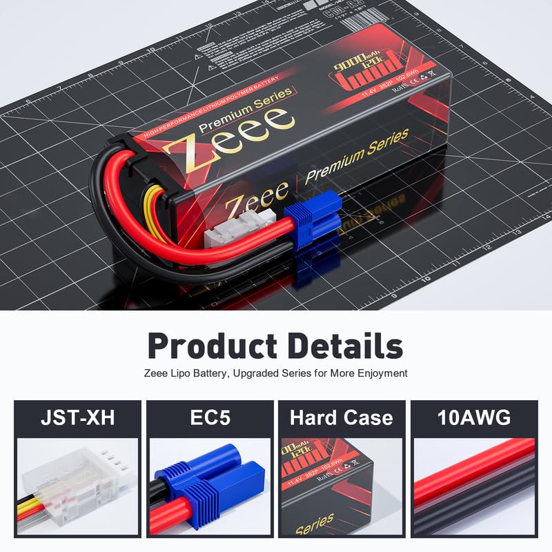 View compareZeee Premium Series 3S Lipo Battery 9000mAh 11.4V High Voltage Hard Case Battery 120C EC5 Connector HV-Lipo for RC Vehicles RC C
