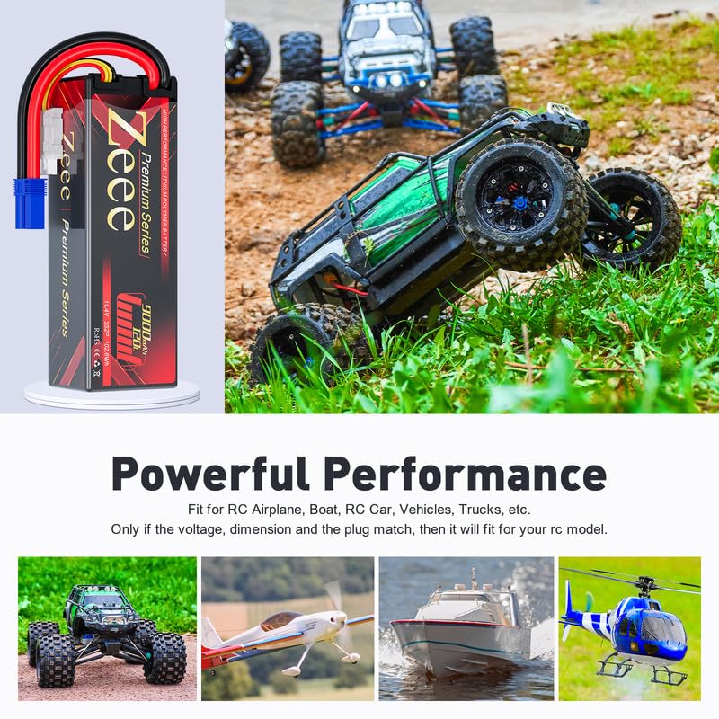 Zeee Premium Series 3S Lipo Battery 9000mAh 11.4V High Voltage Hard Case Battery 120C EC5 Connector HV-Lipo for RC Vehicles RC C