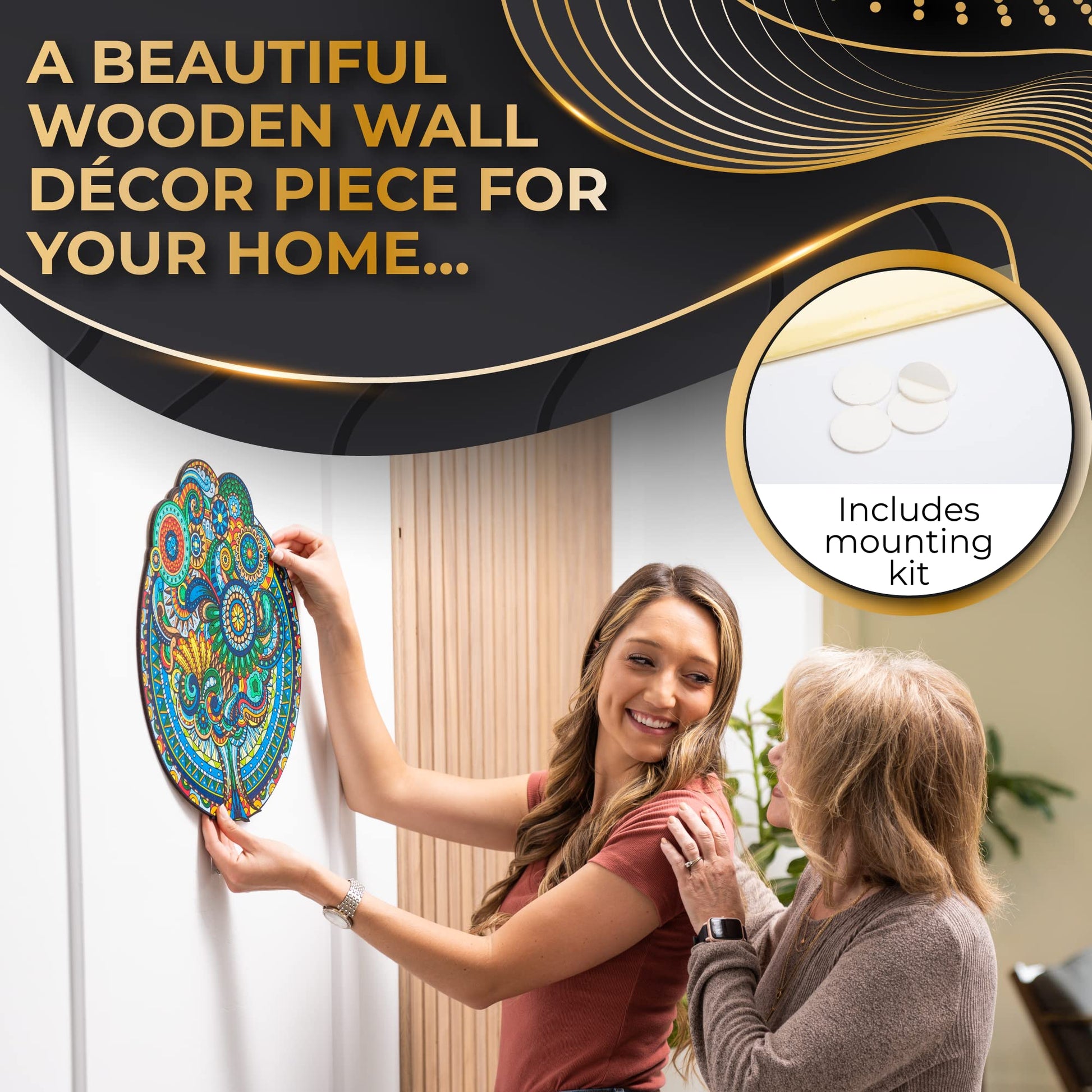 • Q: Can the completed puzzle be displayed as wall art? A: Yes, the ZenChalet Floral Retro Jigsaw Puzzle comes with its own mounting kit, allowing you to easily display your completed puzzle as beautiful wooden wall art. Simply attach the adhesive sheet to the back, and you can showcase your artwork for everyone to admire.