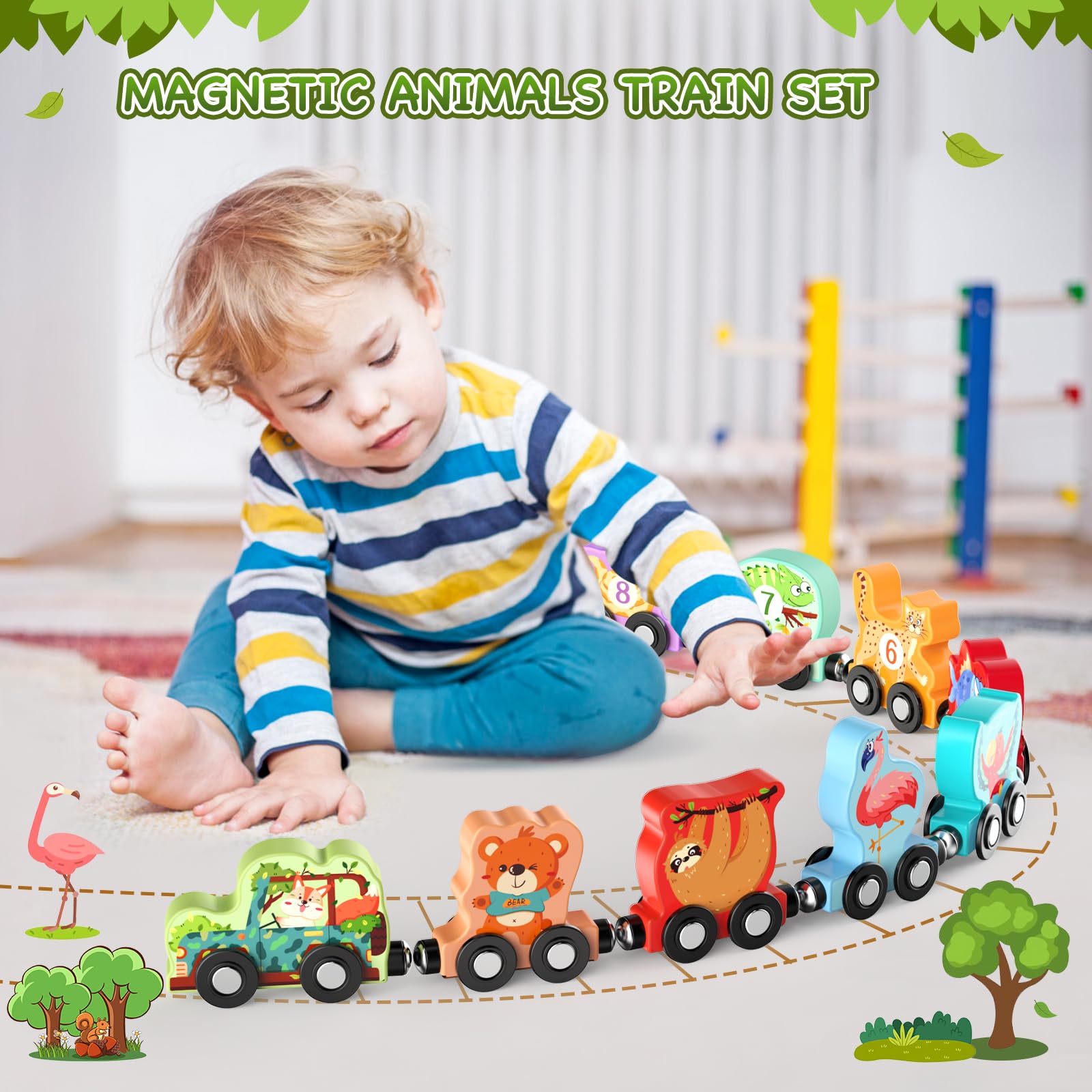 Zeoddler Toys For Toddlers, 11 Magnetic Wooden Animals Train Set, Montessori Toys For Toddlers, Learning Activities, Sensory Toys For Kids, Birthday Gifts For Boys, Girls