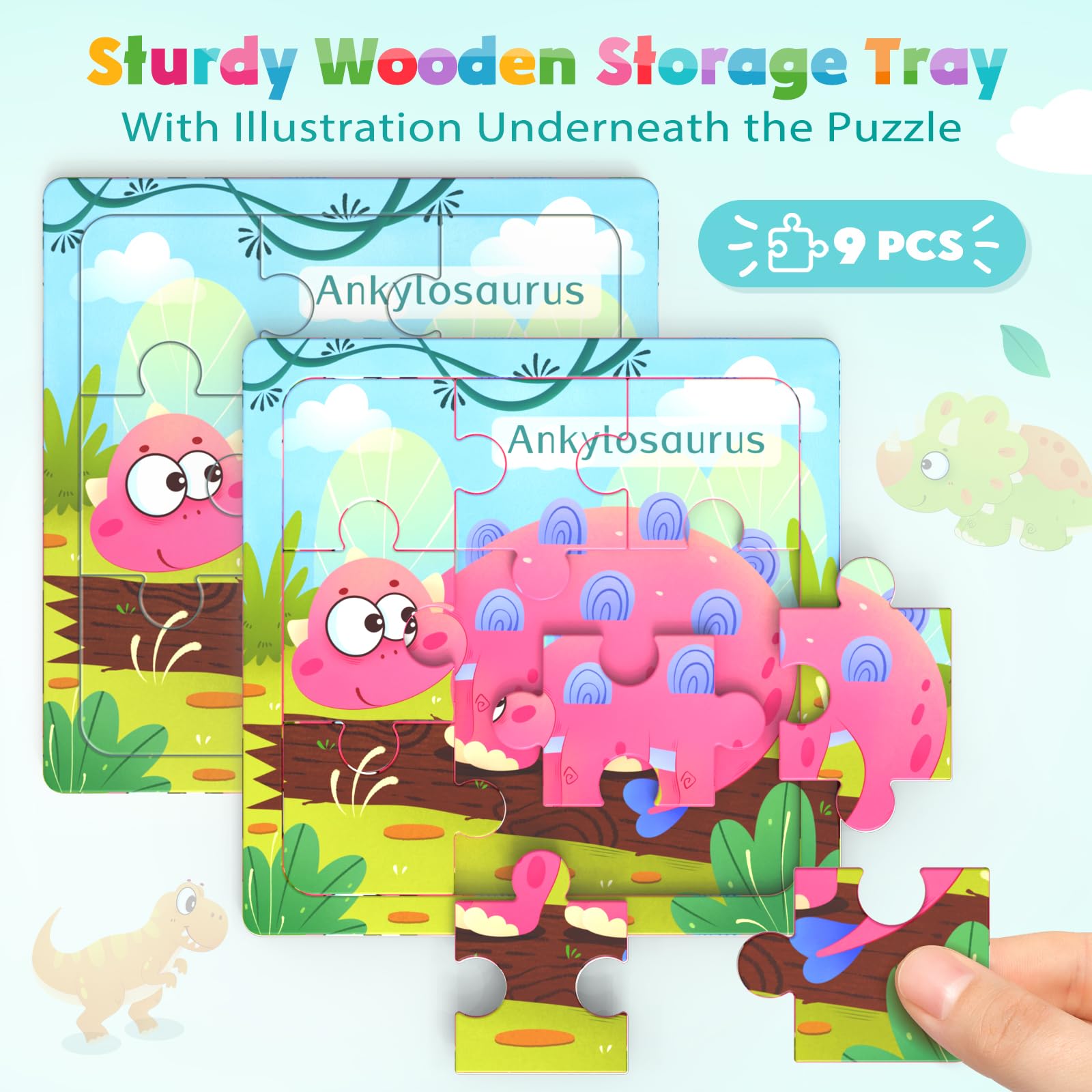 Zeoddler Wooden Puzzles For Toddlers, 8 Pack Dinosaur Jigsaw Puzzles For Kids3-5, 9 Pieces Preschool Learning Activities, Learning & Educational Puzzles, Gift For Boys, Girls