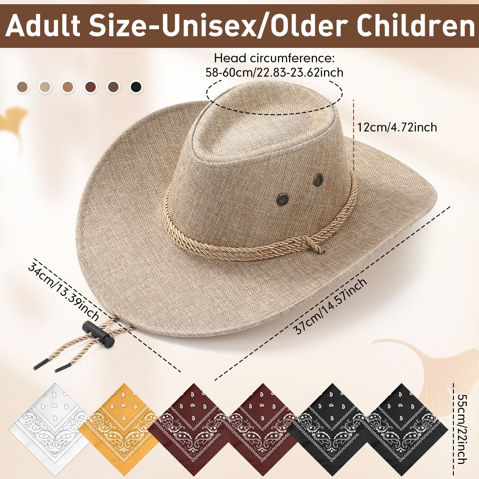 View compareZhanmai 12 Pcs Cowboy Hat and Bandana Cowboy Cowgirl Hats Bulk Western Party Costume Halloween Accessory (Brown Series,Hamp)