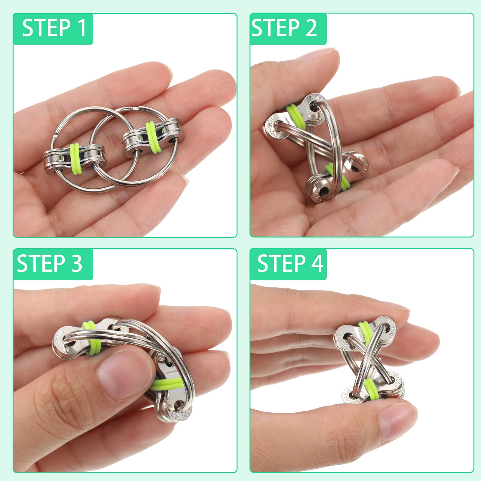 Features: The key flippy chain toy can be applied as birthday gift party favor stocking filler and more. Playing flippy chain fidget toy is a nice way to kill time and keep you away from the electronic product for a while. The bike chain fidget toy is suitable for most people including students teachers office workers service personnel and so on Specifications: Material: stainless and silica gel Color: as shown in pictures Package include: 15 x Bike chain fidget toys Note: Please allow slight differences due to manual measurement. Please allow slight color deviation due to different displays. Small items may included please keep away from little boys and girls in case of choking risk. This product is suitable for children over 6 years old.