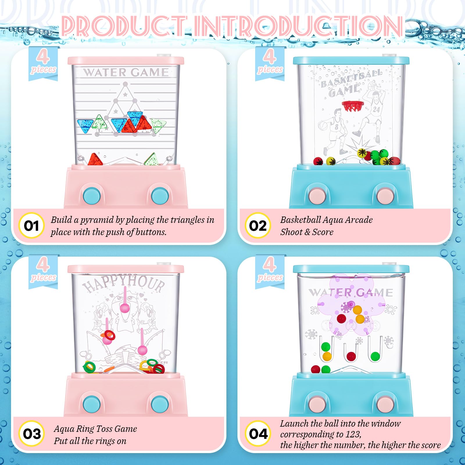 - Q: How do I use the handheld water games? A: To use the handheld water games, you need to open the stopper and add water yourself. Once filled, you can enjoy trying to get the colorful rings into the basket.