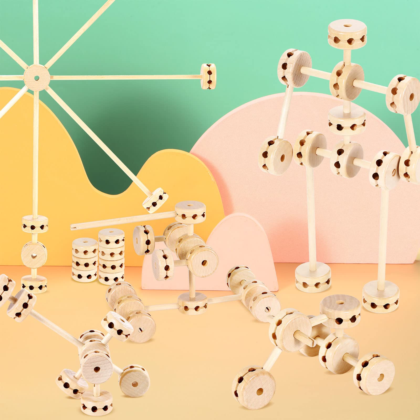 Zhanmai 2 Sets 120 Pieces Wooden Building Blocks Toys Kids Wooden Toys Educational Natural Wood Toys Learning Wooden Blocks Diff