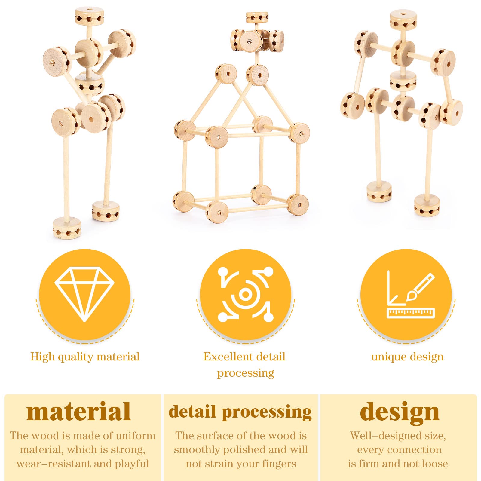 View compareZhanmai 2 Sets 120 Pieces Wooden Building Blocks Toys Kids Wooden Toys Educational Natural Wood Toys Learning Wooden Blocks Diff