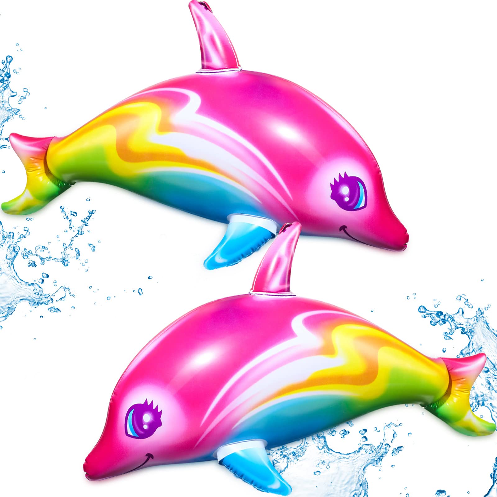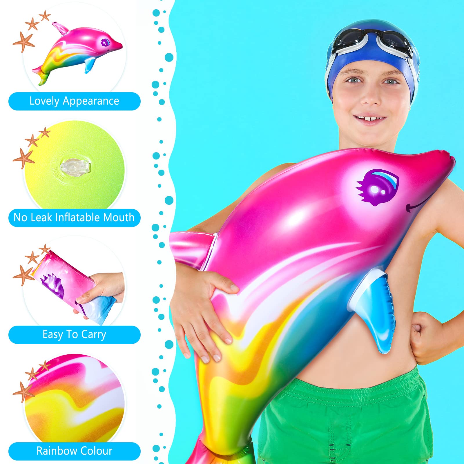 Zhanmai Dolphin Rainbow Inflatable Pool Toy 36 Inch Summer Colorful Pink Poolside Aquatic Themed Decor Inflate Pool Beach Birthd