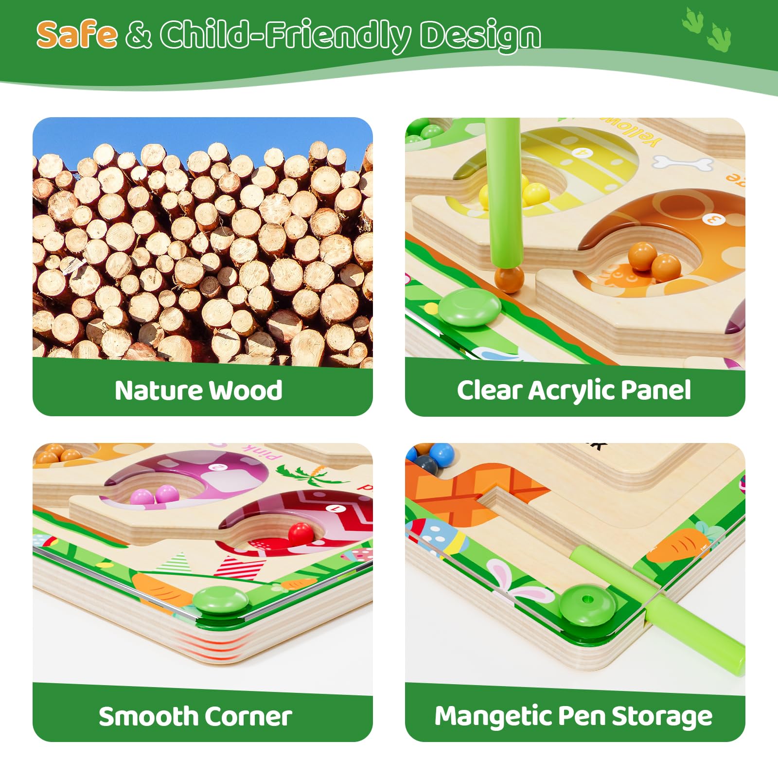 Fine Motor Fun: Spark early literacy skills! The magnetic toddler game features 55 magnetic beads in 10 distinct colors. Great for improving fine motor skills and learning colors and numbers. | Safe & Durable Design: Crafted from natural wood with non-toxic, eco-friendly paint. Smooth edges and rounded corners ensure safety, while the compact size fits effortlessly in backpacks or beads seats. | Montessori-Inspired Play: Boost creativity, problem-solving, and logical thinking! This interactive toy encourages independent exploration, curiosity, and focus-ideal for developing fine motor skills and pre-reading abilities. | Perfect Gift for Kids: Vibrant colors and a charming easter theme delight toddlers! Packaged in a festive box, it