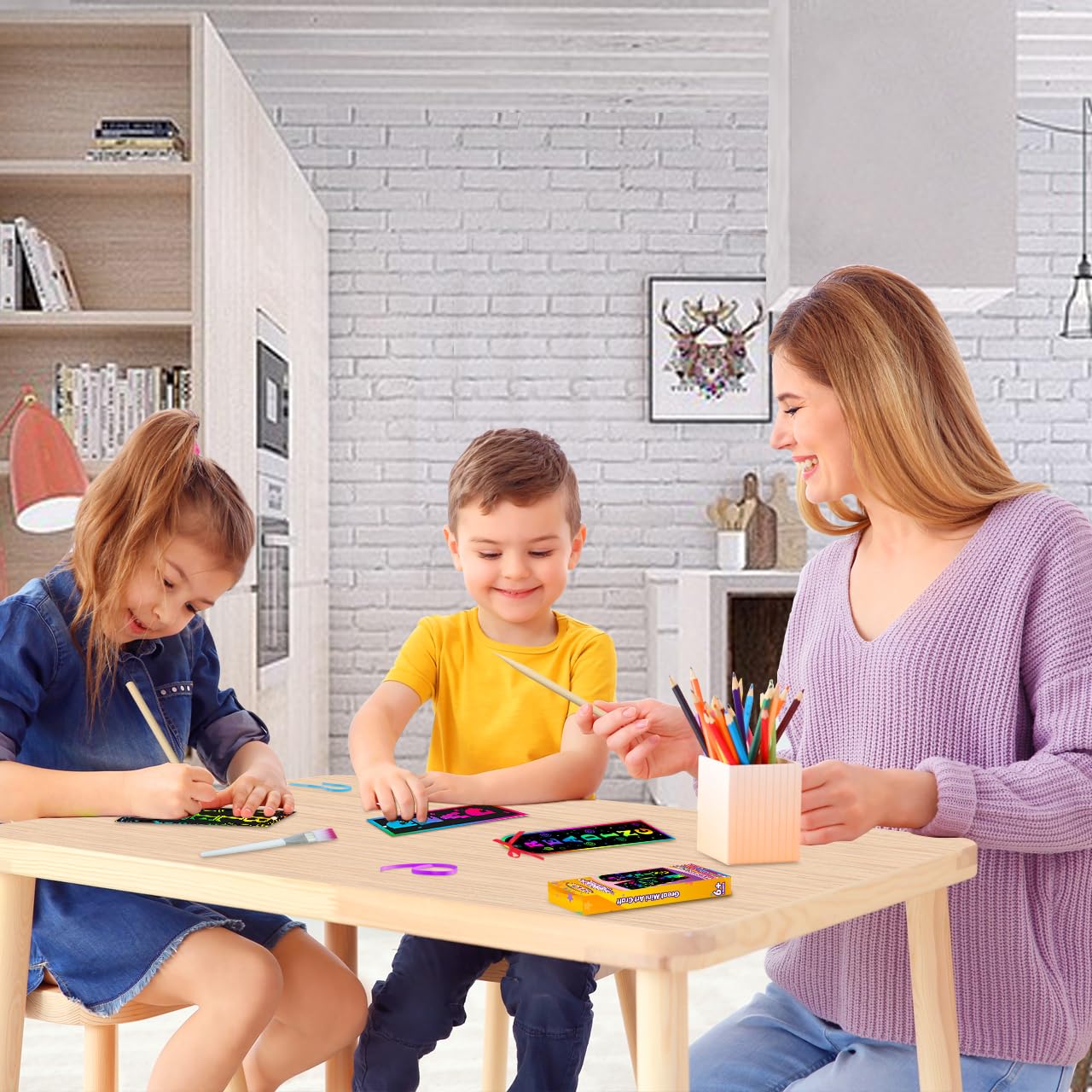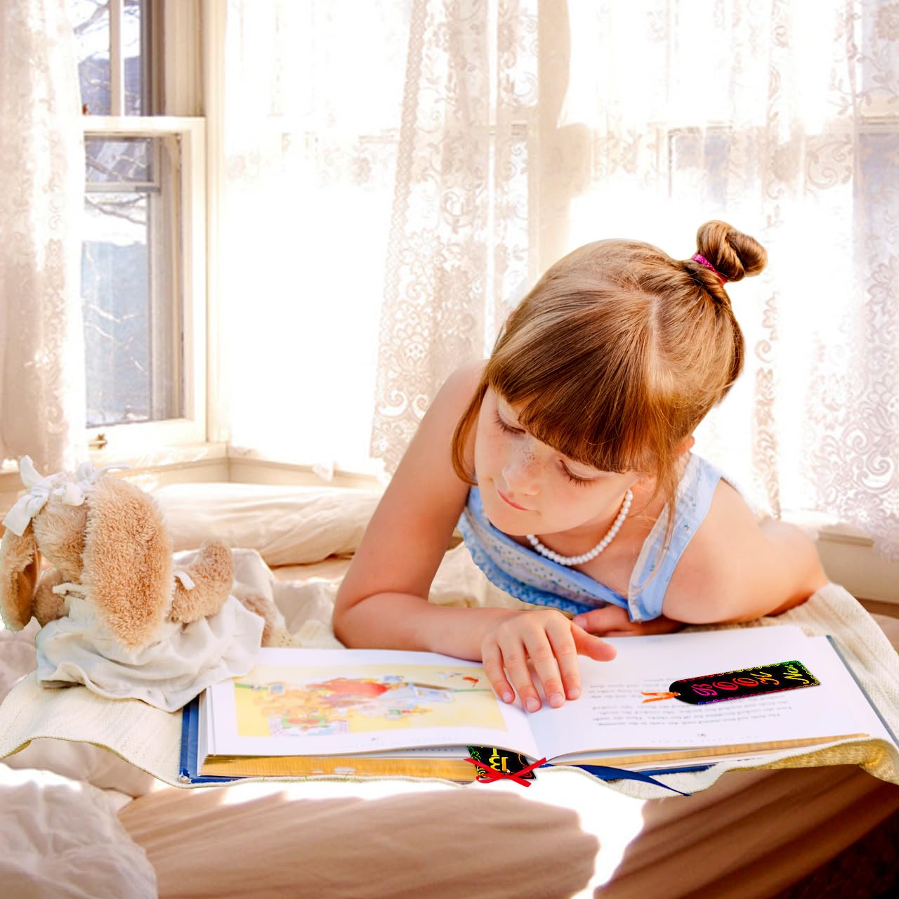 Kids Can Make Unique Scratch Bookmarks: Unleash kids creativity with scratch art bookmarks! This set includes 36 bookmarks, 36 styluses, 36 ribbons, and 36 bags. Perfect for kids ages 4-8 8-12 and goodie bags stuffers, party favors, classroom gifts, student prizes ect Perfect for Party Favors and Goodie Bags: The bulk design is designed for birthday parties, art parties, or any other kids parties , Kids can create fun, colorful bookmarks during the party, store them in bags, exchange them with friends or keep them as art, and parents or teachers also dont worry about mess Mess Free Art Crafts Activity: Improving kids hands-on skills and give kids full Unique participation and atmosphere. Whether at home or traveling, parents will love this creative games and dont need to worry about making a mess So Easy to Use: Use the stylus to scratch away the surface black film to reveal the beautiful rainbow colors, you instantly have a colorful creation. Colorful ribbon could hang their paintings up to complete a creativity art bookmarks