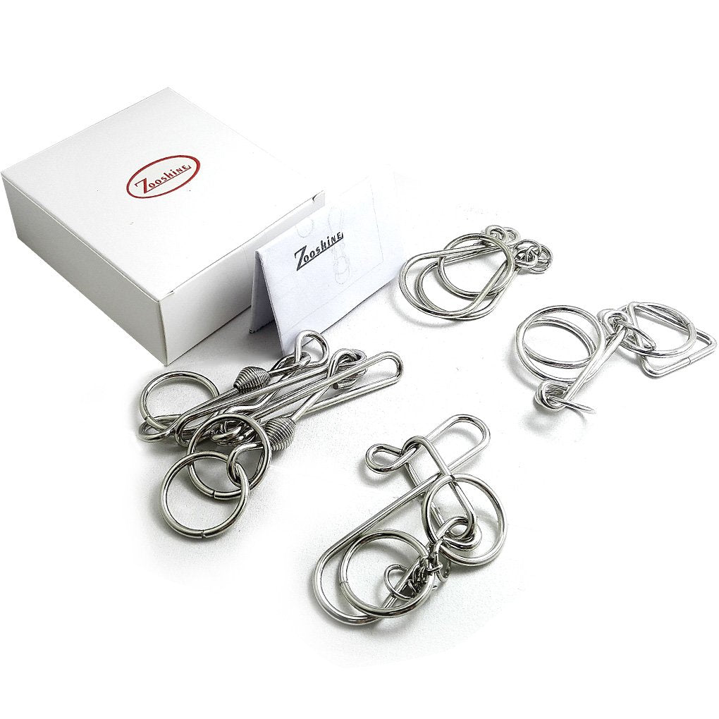 Zooshine 4 Sets Advanced Metal Brain Teasers Puzzles Iq Toys For Adults Kids,Box Package